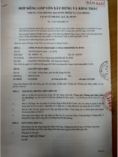 Hợp đồng góp vốn xây dựng của một nhà đầu tư ký với Công ty Vimedimex