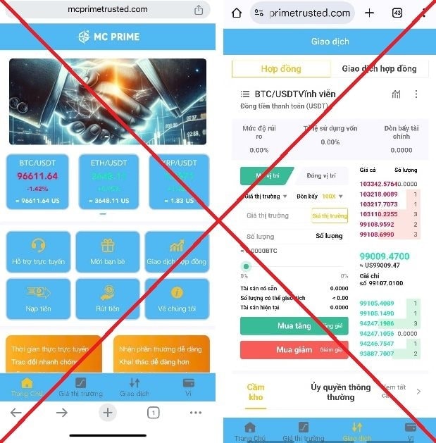 Theo trình báo, thông qua mạng xã hội Facebook, bà T. (trú tại Hà Nội) có kết bạn và trò chuyện với tài khoản "Nguyễn Thị Thùy Dung". Sau một thời gian, đối tượng trên mời bà T. tham gia đầu tư tiền ảo thông qua website: https://www.mcprimetrusted.com/#/assets.1