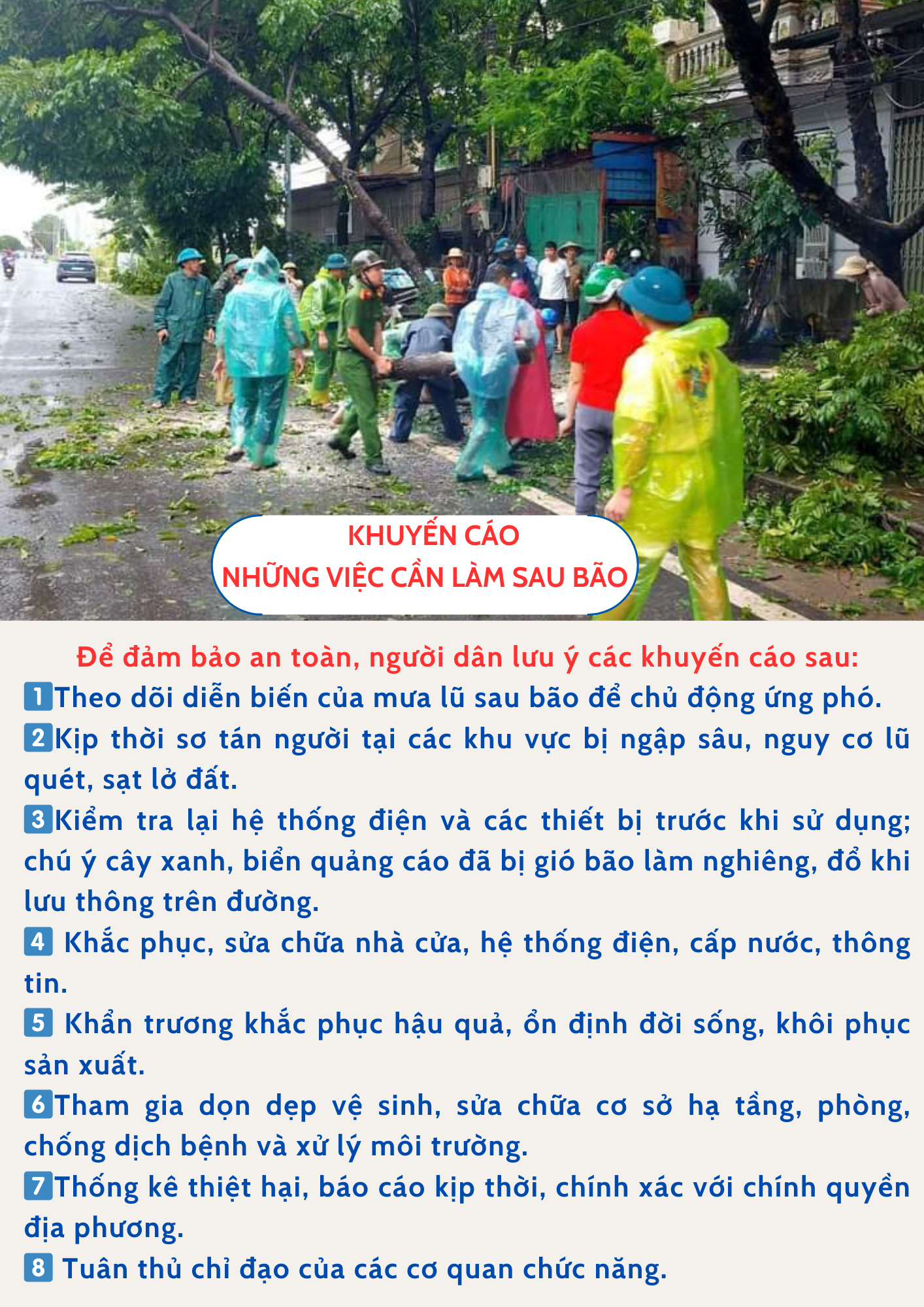 Những việc cần làm sau bão. Nguồn BCĐ Quốc gia phòng chống thiên tai.