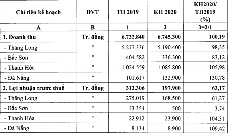 Năm 2020, Thuốc lá Thăng Long và các công ty con đặt mục tiêu duy trì doanh thu tương đương 2019; nhưng lợi nhuận trước thuế dự kiến giảm 37% còn 198 tỉ đồng có thể đến từ việc khấu hao dây chuyền nhà máy mới.