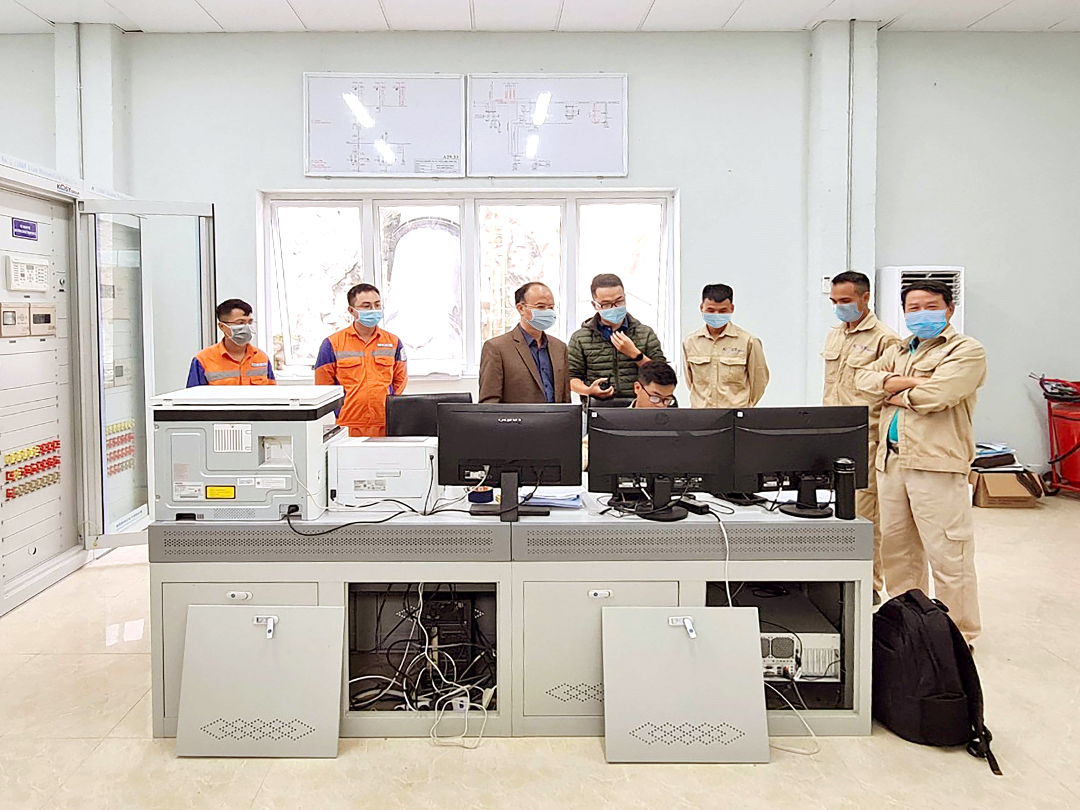 Ban quản lý Nhà máy Thuỷ điện Nậm Pạc 2 kiểm tra công tác phát điện tại trạm biếp áp.