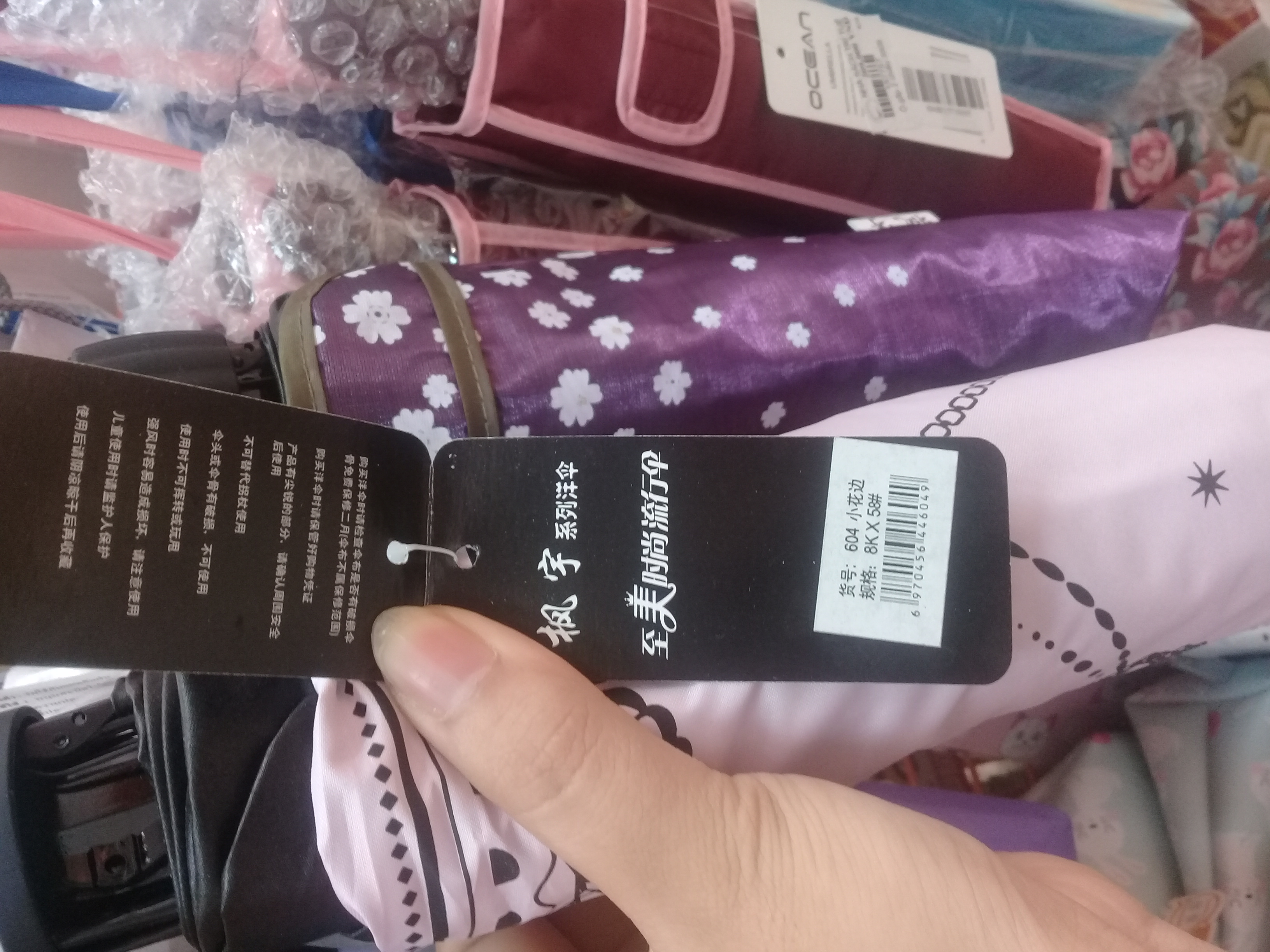 | Sản phẩm ô che mưa bán tại nhà sách Trí Tuệ không có tem nhãn phụ gây khó cho người tiêu dùng |