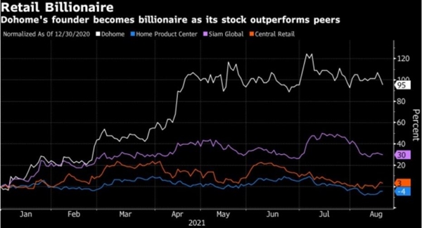 Kể từ đầu năm đến nay, lợi nhuận của công ty này tăng 253% lên 1,14 tỉ baht. Cổ phiếu của Dohome hôm 23/8 cũng tăng tới 2%.