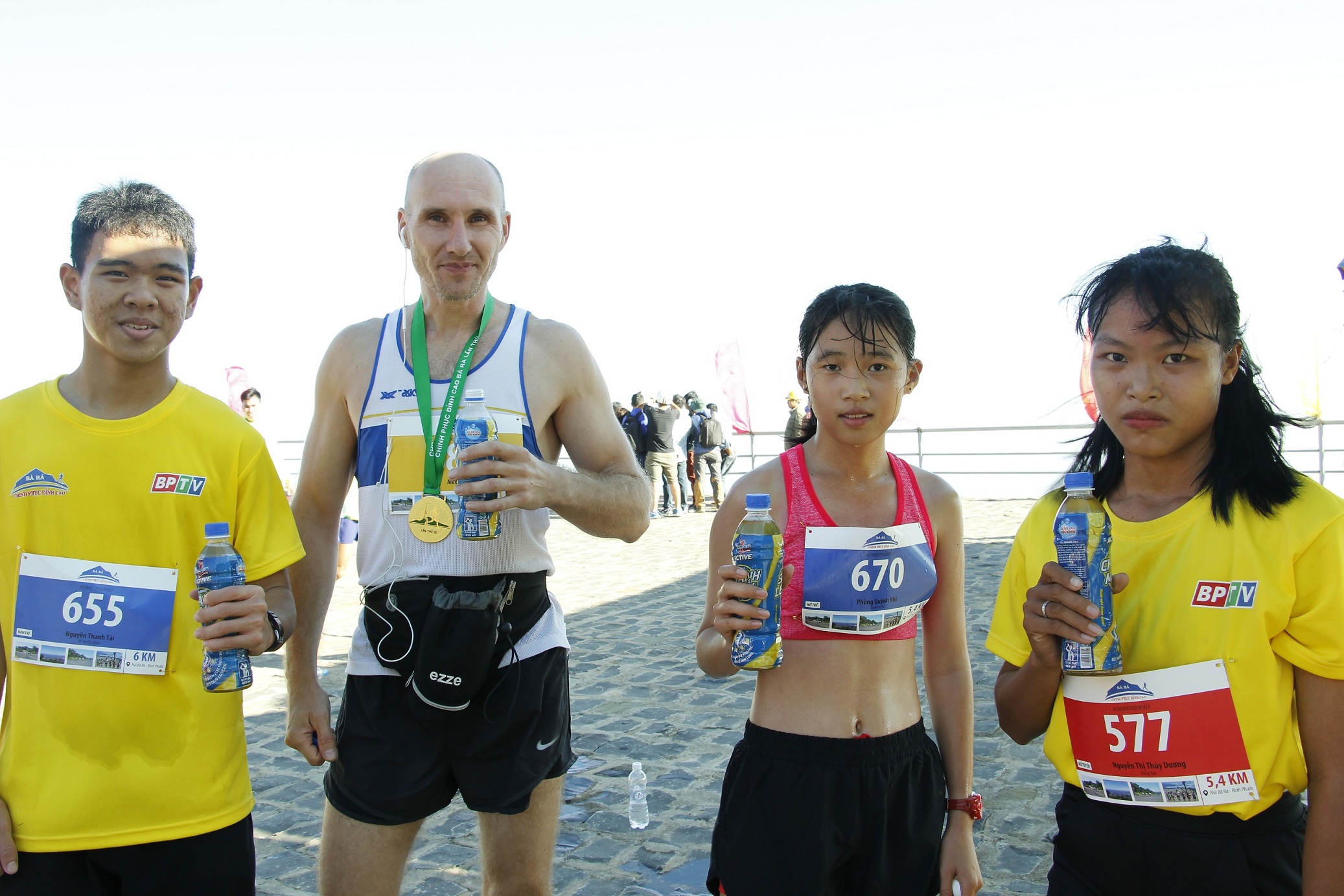 Thanh Vũ chia sẻ với các VĐV tại đích đến