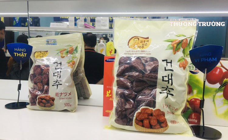 Với loại táo đỏ Hàn Quốc, hàng chính hãng là thật (trái) bình thường chỉ là bao gói đơn thuần vừa phải và không có hộp. Trong khi táo đỏ giả nhãn hiệu có bao gói lớn hơn và kèm theo hộp đựng. Đơn vị nhập khẩu táo đỏ Hàn Quốc duy nhất tại Việt Nam hiện nay là Công ty TNHH TM Organic Farm và hàng được nhập khẩu chính ngạch, được bảo hộ nhãn hiệu được đóng túi có trọng lượng chỉ 500 gram.