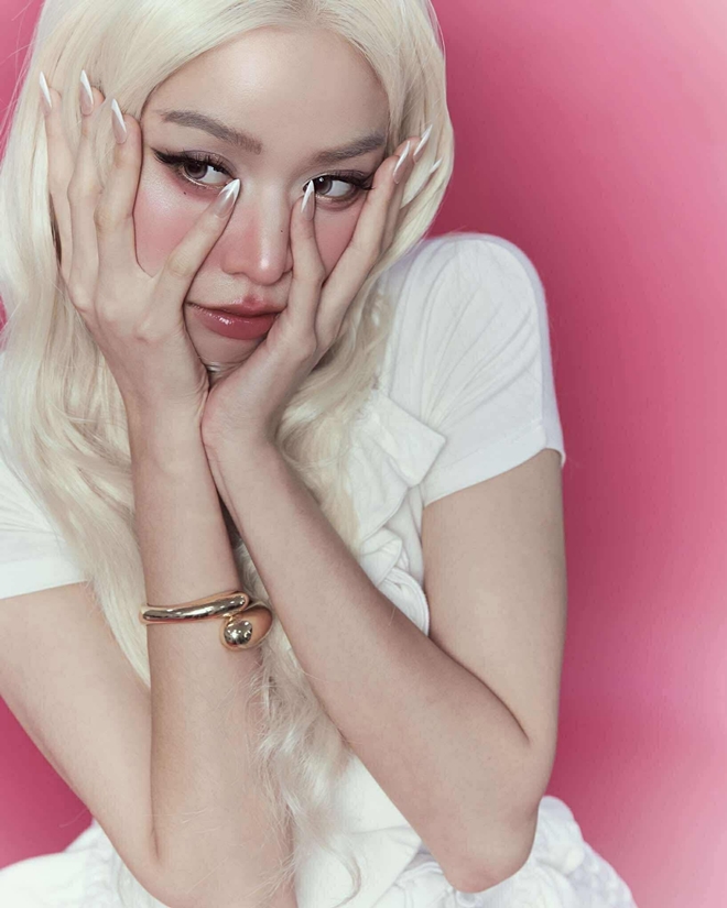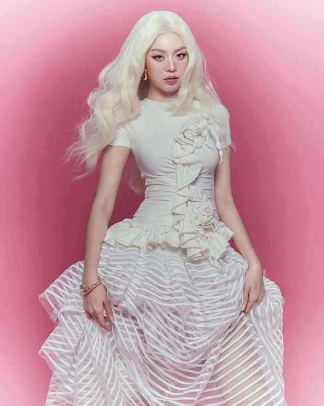 Tuy nhiên, điểm gây chú ý nhất trong bộ ảnh là tạo hình hoàn toàn mới của nàng hậu: mái tóc bạch kim uốn sóng, trang điểm tông hồng lạnh với đôi mắt sắc nét và môi bóng gợi cảm, mang đến vẻ đẹp như búp bê lai Tây.