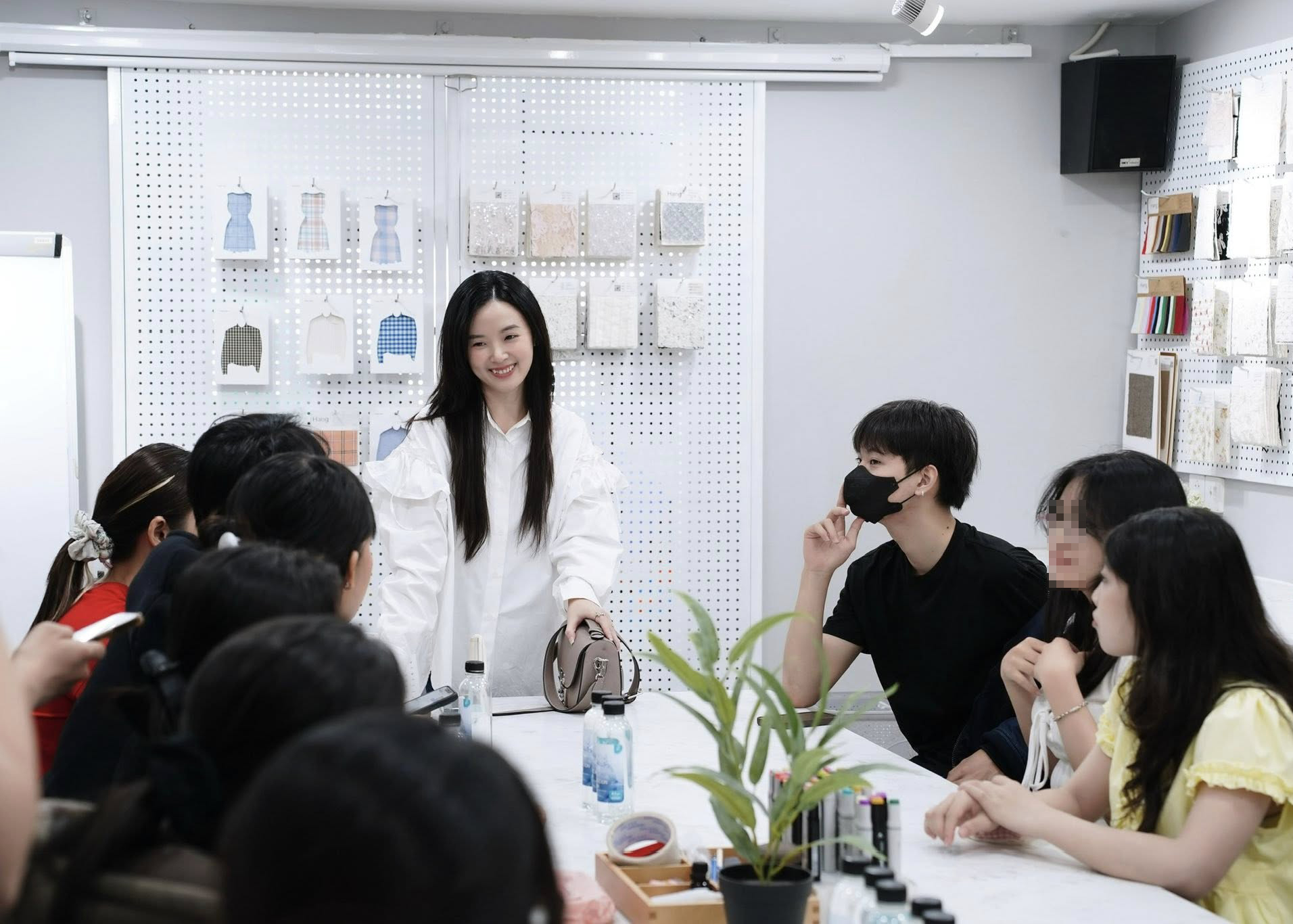 Hình ảnh khác của Midu trong một buổi giảng dạy cho sinh viên.