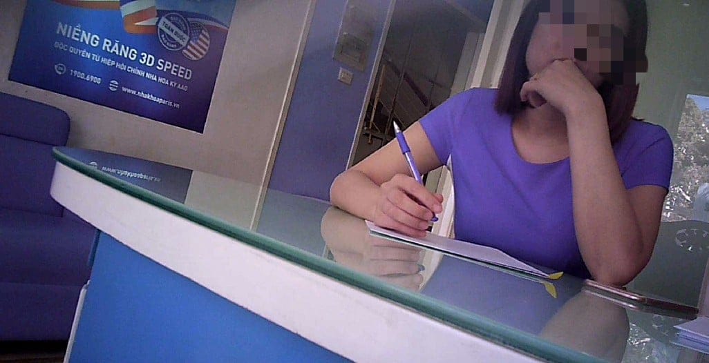 | Nữ nhân viên của nha khoa Paris chi nhánh Quang Trung tư vấn dịch vụ không có trong giấy phép. |