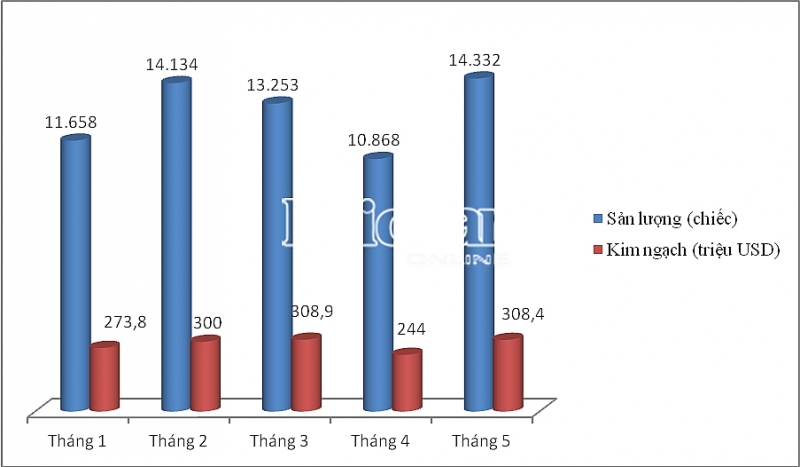 Kết quả nhập khẩu ô tô theo tháng trong 5 tháng đầu năm. Biểu đồ: Thái Bình |