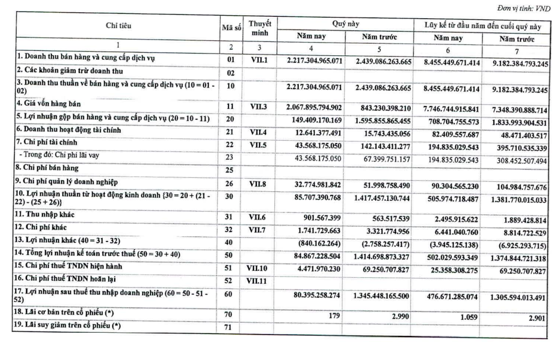 Trong kỳ, doanh thu tài chính giảm hơn 3 tỷ đồng xuống còn 12,6 tỷ đồng, chi phí tài chính trong quý 43,5 tỷ đồng, giảm gần 100 tỷ đồng so với quý 4/2020, trong đó riêng chi phí lãi vay giảm được 24 tỷ đồng. Chi phí quản lý doanh nghiệp cũng giảm 20 tỷ đồng chỉ còn gần 33 tỷ đồng.