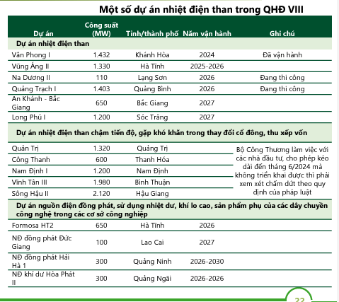 Thống kê từ VCBS, miền Bắc có thêm khoảng 3.160 MW điện than nếu các dự án bị chậm tiến độ có thể hoàn thành kịp đến năm 2030. Trong khi đó, nhu cầu được tính toán theo QHĐ8 cần có thêm 10.800 MW mới để áp ứng.