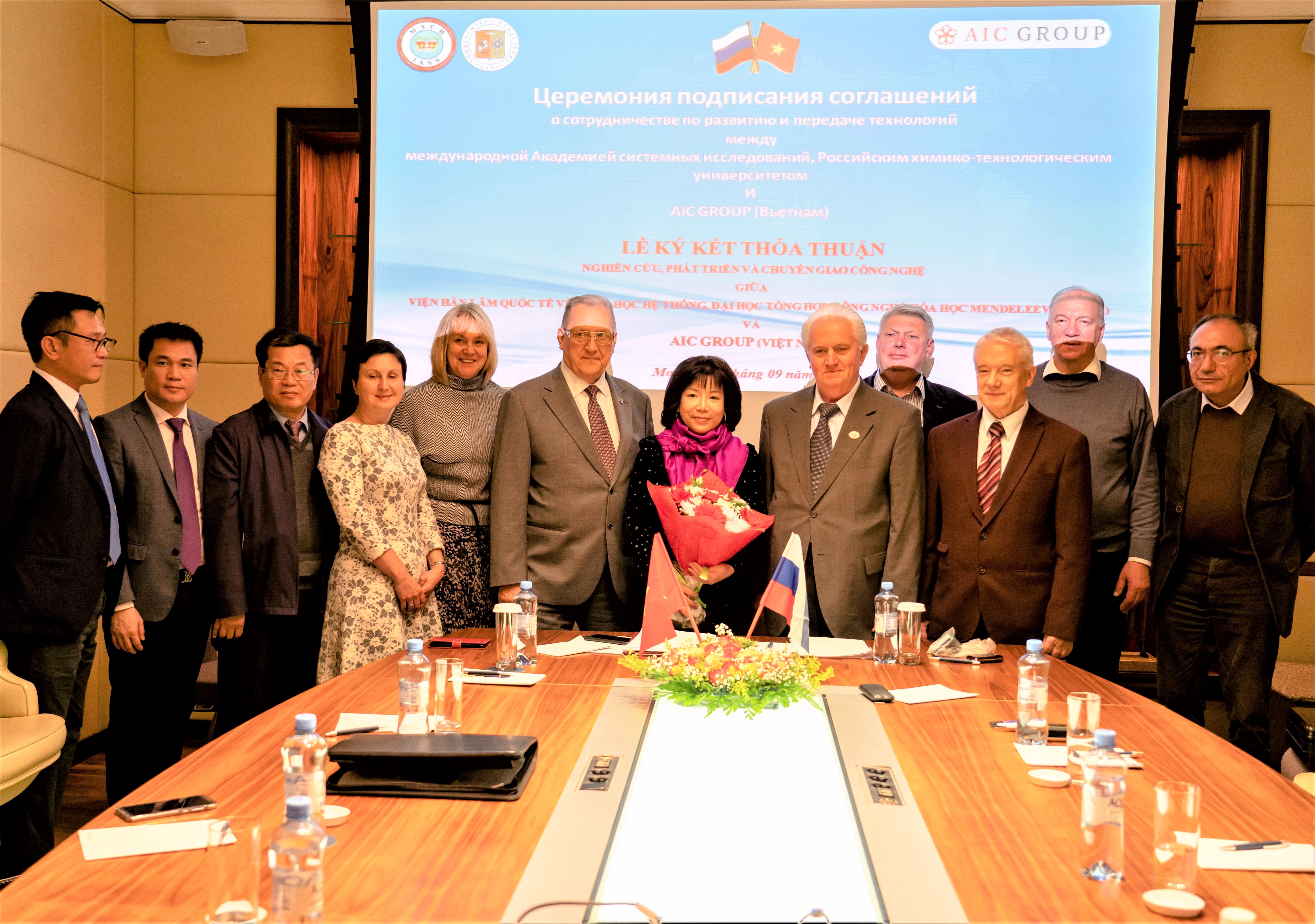 Chiều 15/9, tại thủ đô Moskva, Viện Hàn lâm Quốc tế về Khoa học Hệ thống (MASI) LB Nga, Trường Đại học Tổng hợp Công nghệ Hoá học Mendeleev và Công ty Cổ phần Tiến bộ Quốc tế (AIC) đã tổ chức buổi lễ ký kết hợp tác, nghiên cứu, phát triển và chuyển giao cho Việt Nam nhiều công nghệ mới trong các lĩnh vực gồm công nghệ thông tin, môi trường và y tế.