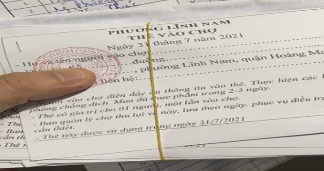 Còn ở phường Lĩnh Nam, quận Hoàng Mai mỗi ngày sẽ có một phiếu đi chợ riêng. Mỗi phiếu có giá trị cho 1 người và 1 lần vào chợ, khi đi chợ cần điền đầy đủ thông tin vào phiếu