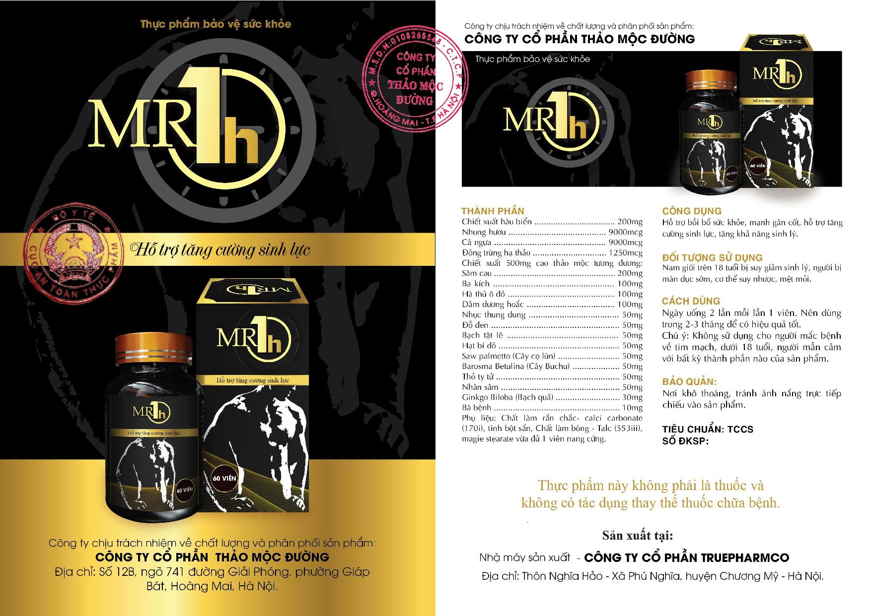 Công ty cổ phần Thảo Mộc Đường (địa chỉ: Số nhà 12B, ngõ 741 đường Giải Phóng, phường Giáp Bát, quận Hoàng Mai, TP. Hà Nội) là đơn vị công bố và chịu trách nhiệm về sản phẩm Mr 1h.