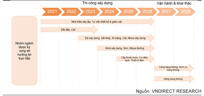 Việc gói thầu lớn nhất - 5.10 dự kiến được khởi công trong tháng 8/2023 cũng sẽ giúp các gói thầu khác sớm được triển khai trong thời gian tới. Theo ACV, công ty kỳ vọng dự án sẽ hoàn thành trong năm 2026, chậm hơn kế hoạch ban đầu là năm 2025. VNDirect tin rằng SBLT sẽ là động lực tăng trưởng cho các doanh nghiệp xây dựng – vật liệu xây dựng trong giai đoạn 2023-2026. Sau khi hoàn thành, các doanh nghiệp cảng hàng không, dịch vụ hàng không và hãng hàng không cũng sẽ được hưởng lợi từ dự án.