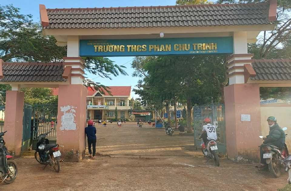 Trường THCS Phan Chu Trinh nơi ghi nhận có học sinh dương tính với SARS-CoV-2