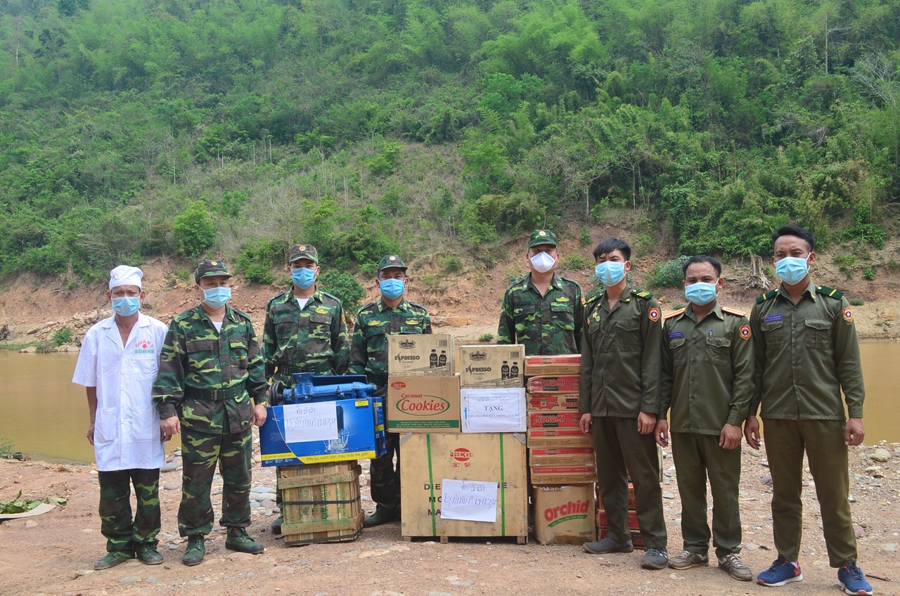 Với phương châm “Giúp Bạn là tự giúp mình” Bộ chỉ huy BĐBP tỉnh Nghệ An đã tổ chức các đoàn tặng quà, hỗ trợ lực lượng Quân sự, Biên phòng, Công an, Hải quan phía đối diện thuộc 3 tỉnh của nước bạn Lào với lượng vật chất, trang bị gồm: 165 chiếc đèn pin, 650 kính bảo hộ, 5.050 khẩu trang, 650 màng che giọt bắn, 99 bộ quần áo bảo hộ, 2.850 đôi găng tay y tế, 65 lít nước mắm, 36 kg cá khô với tổng trị giá gần 75 triệu đồng; tặng bạn Lào 1 bộ máy kiểm tra thân nhiệt phục vụ kiểm tra thân nhiệt người xuất, nhập cảnh qua Cửa khẩu quốc tế Nậm Cắn; phối hợp, tham mưu UBND tỉnh Nghệ An tặng lực lượng vũ trang và nhân dân tỉnh Xiêng Khoảng vật chất, kinh phí phục vụ PCD trị giá 700 triệu đồng.