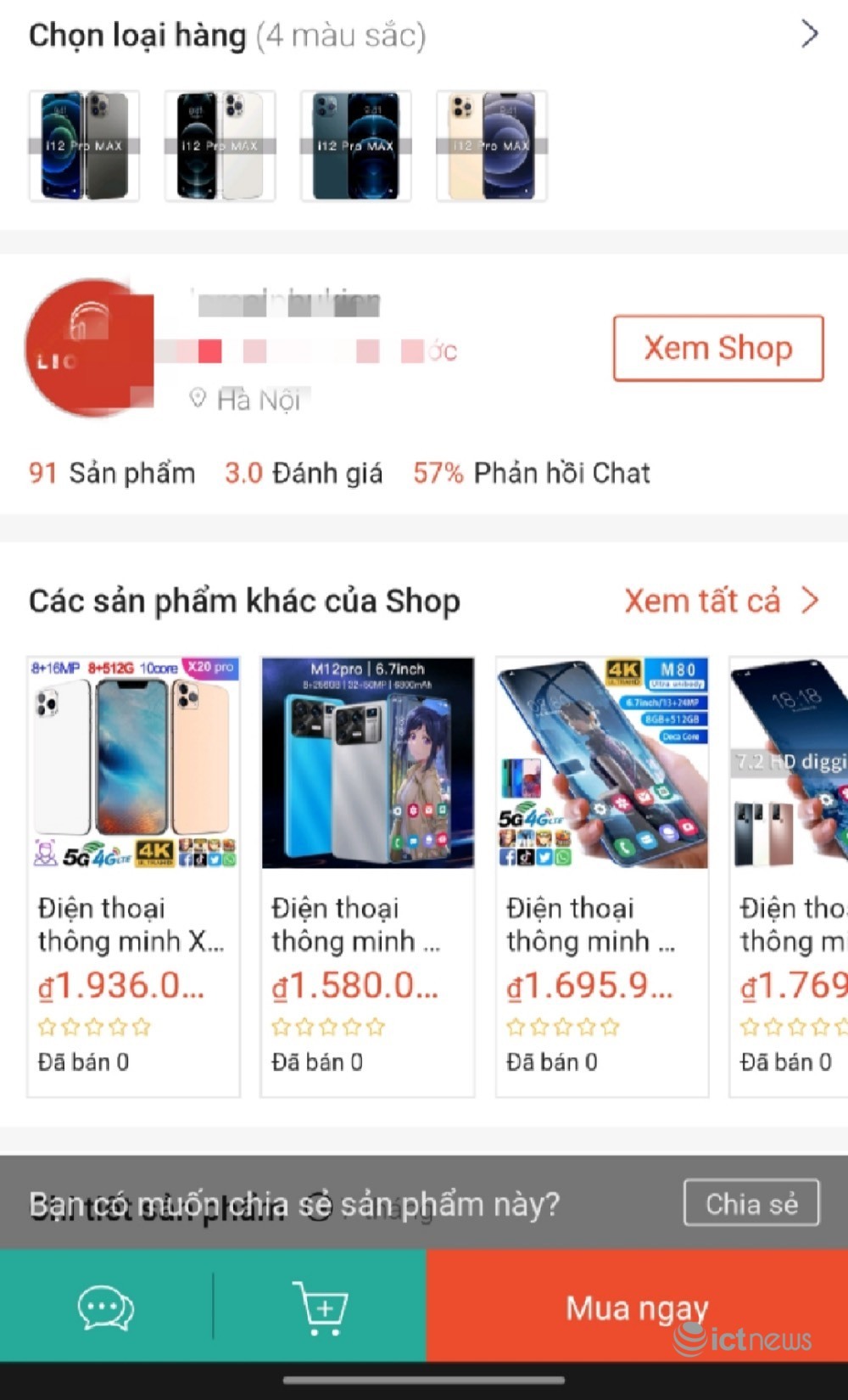Trên Shopee, hàng loạt smartphone có thiết kế khá giống với những smartphone cao cấp trên thị trường, được rao bán giá từ 1-2 triệu đồng nhưng không ai mua. Những điện thoại này được đặt tên như M12Pro, i12 Pro MAX, X20 Pro, P50 Pro... với các thông số “khủng” như camera zoom 120X, màn hình 4K, bộ nhớ 512GB, song trên thực tế sản phẩm nhận được có chất lượng không đúng. Có lẽ người dùng thương mại điện tử đã cảnh giác hơn nên số lượng người mua sản phẩm này vẫn bằng 0.