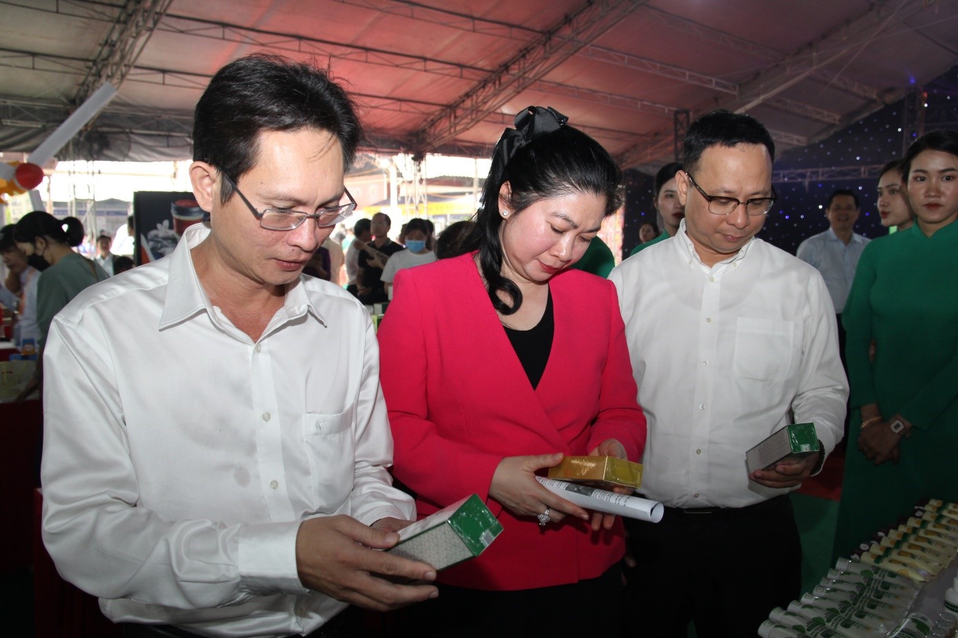 Cùng với đó là rất nhiều gian hàng giới thiệu sản phẩm VietGAP, OCOP, đặc trưng của địa phương, sản phẩm nông nghiệp công nghệ cao, các giống cây trồng, hoa cây cảnh, cá cảnh, cũng như các mặt hàng tiêu dùng, gia dụng, thủ công mỹ nghệ, chăm sóc sức khỏe. Đặc biệt có các mặt hàng Tết như hoa cây kiểng, trái cây sấy, mật dừa nước, lạp xưởng, tôm khô…Nhiều gian hàng trung bày các bộ sản phẩm nông nghiệp được thiết kế dạng quà tặng Tết sang trọng, đẹp mắt – giúp nâng tầm nông sản Việt.