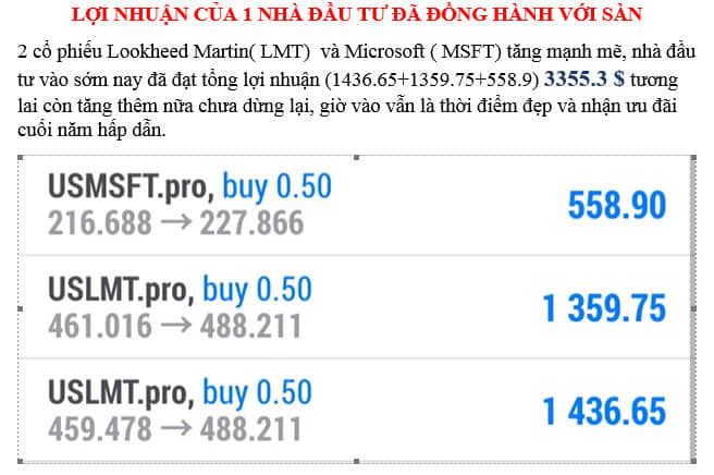 Hình ảnh lợi nhuận mà phóng viên nhận được từ những người xưng là “chuyên viên tư vấn chứng khoán quốc tế”.