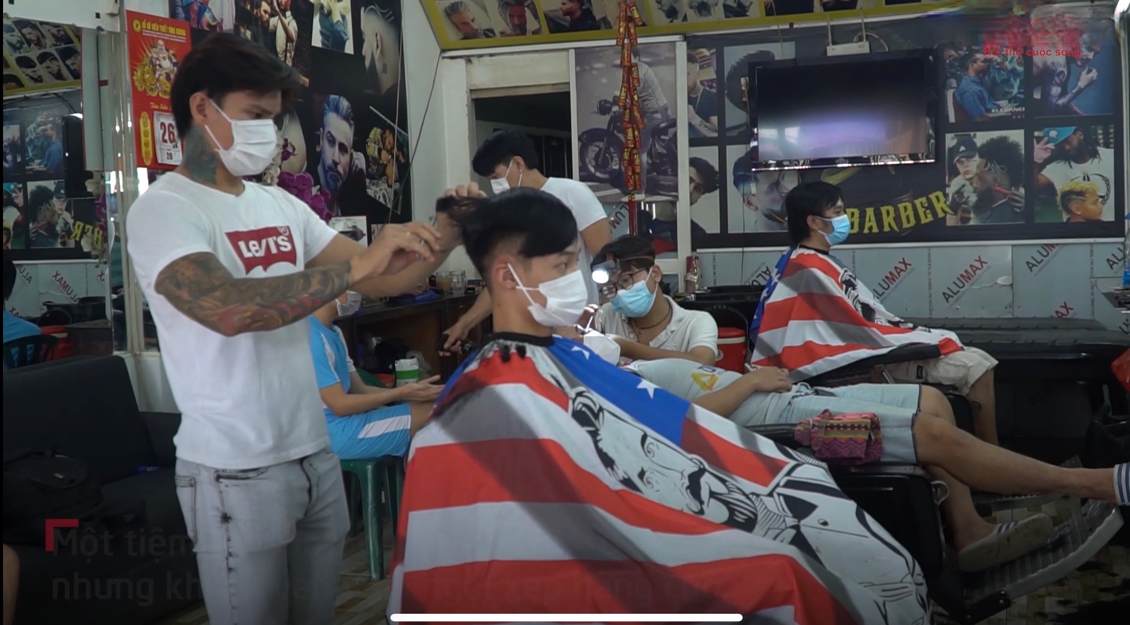 Theo anh Dũng, một khách đến cắt tại đây cho biết: “Sau nhiều ngày ở nhà giãn cách tóc mọc dài nóng nực rất khó chịu, vì trước giờ tôi toàn cắt ngắn gọn thôi. Tôi đợi tới 1 tiếng rưỡi mới tới lượt”.
