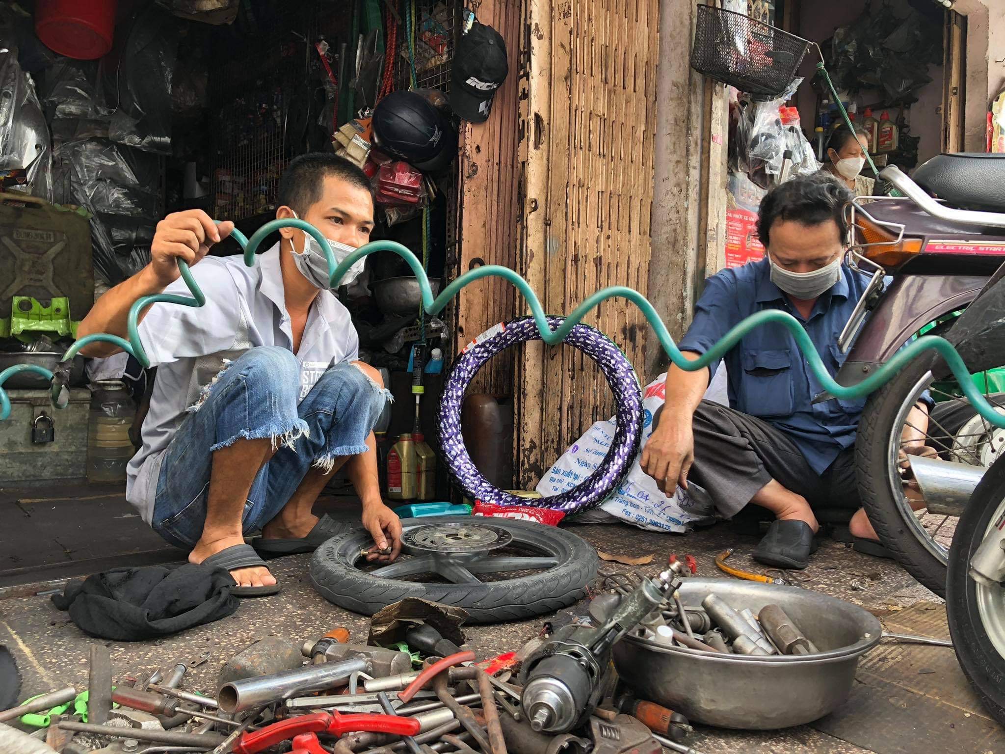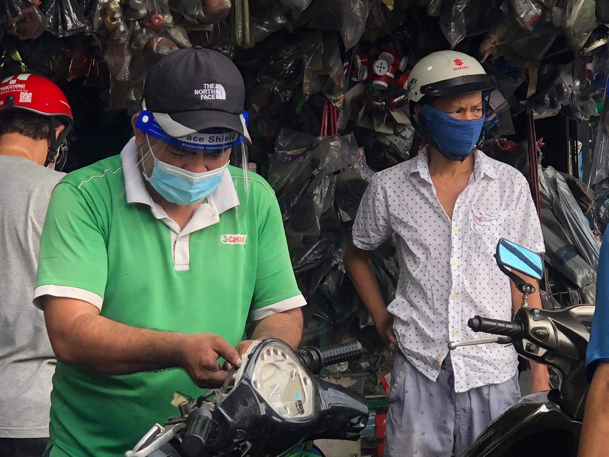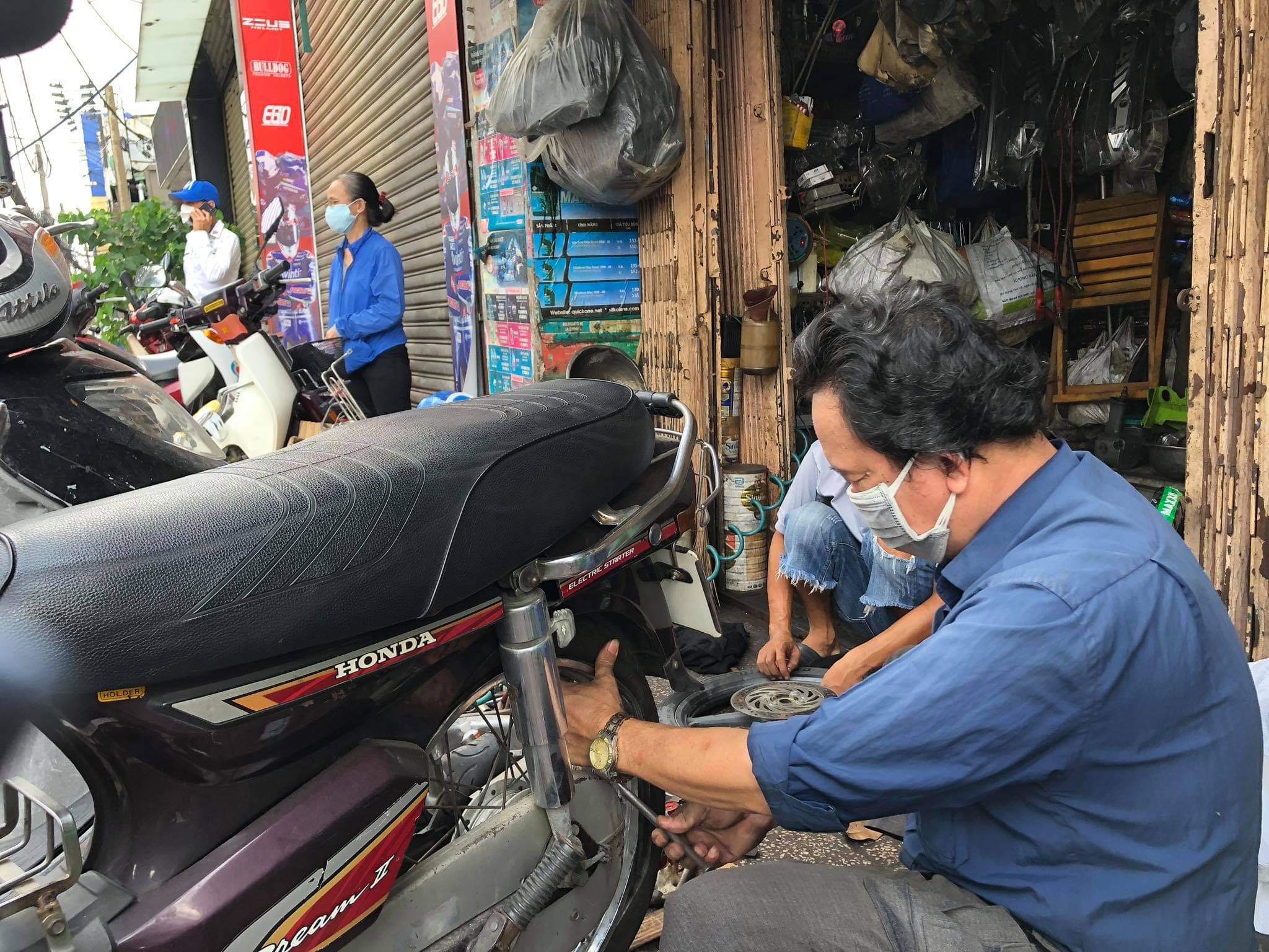 Thợ sửa xe làm việc không ngơi tay ngày đầu hết lệnh giãn cách.