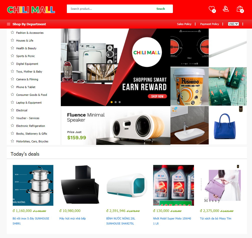 Trang chủ website của Chili Mall.