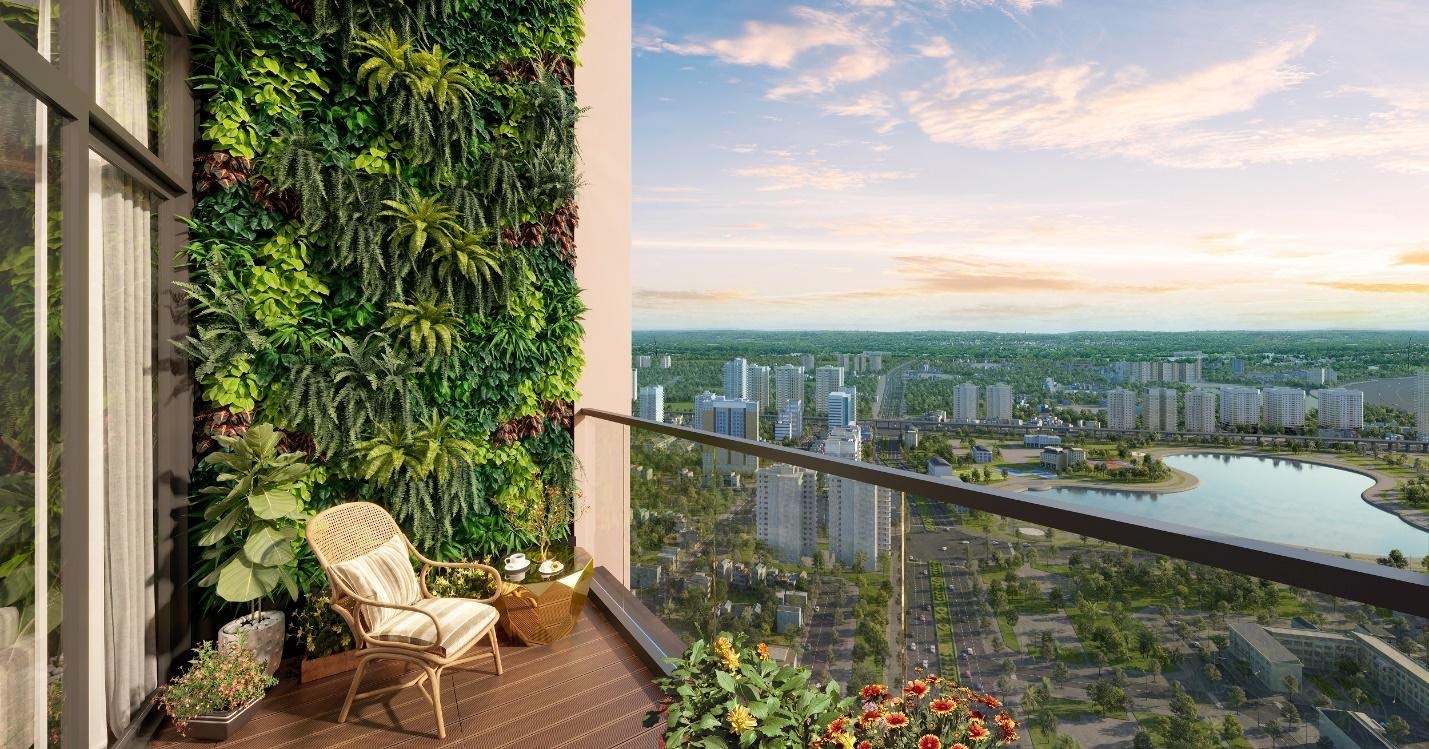 Điểm nhấn độc đáo chính là chuỗi các khu vườn và công viên xanh trải dọc dài trên từng cao độ. Sắc xanh của thiên nhiên, cây cỏ len vào từng căn hộ, nơi có khu vườn ban công rộng tới 8m2 hay trần căn hộ có chiều cao vượt trội từ 3,6m đến 4,5m, đủ để có thể mang cả cây cao lớn vào trong phòng.