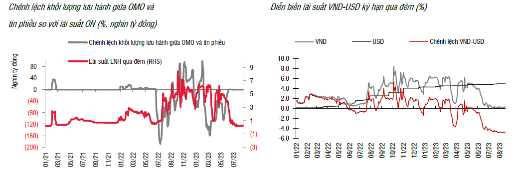 Tuần từ 14/08-18/08/2023, thanh khoản trên hệ thống ngân hàng ổn định và trên kênh thị trường mở không có hoạt động mới diễn ra. Áp lực về tỷ giá xuất hiện nhiều hơn vào đầu tuần nhưng hạ nhiệt phần nào về cuối tuần.
