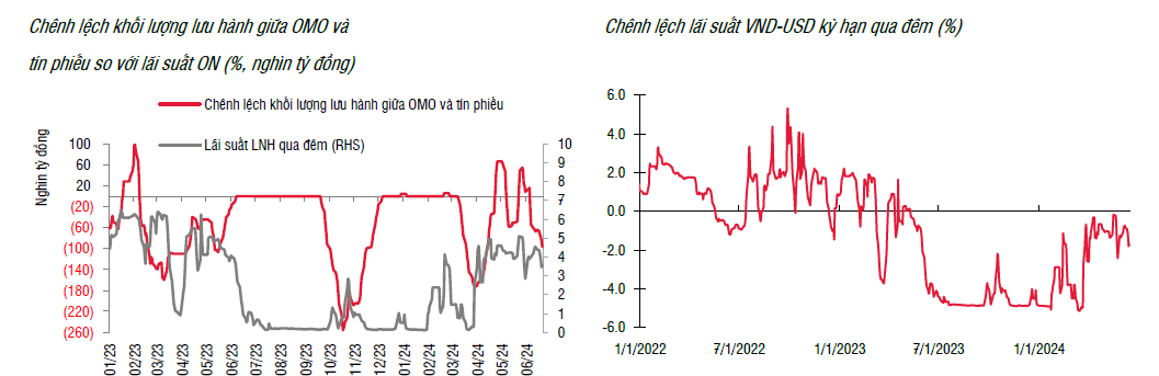 Trong tuần trước, thanh khoản hệ thống ở trạng thái ổn định và NHNN duy trì trạng thái rút ròng trên kênh thị trường mở, với tổng giá trị đạt 33,1 nghìn tỷ đồng. Cụ thể, xu hướng hút bớt thanh khoản xuyên suốt với việc đẩy mạnh phát hành tín phiếu (30,7 nghìn tỷ) trong khi có một lượng hợp đồng mua kỳ hạn đáo hạn (5,1 nghìn tỷ).