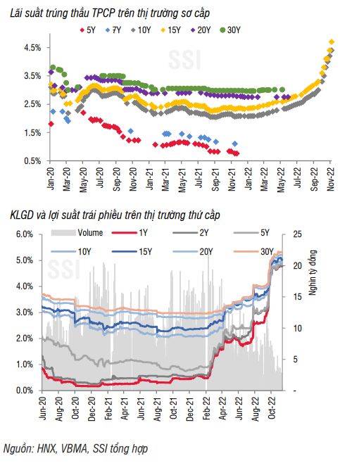 Tính đến hiện tại, KBNN phát hành thành công 156 nghìn tỷ đồng, hoàn thành 39% kế hoạch phát hành năm. Lợi suất trúng thầu trên thị trường sơ cấp đã thu hẹp đáng kể so với thị trường thứ cấp, và điều này có thể kích hoạt nhu cầu tham gia thị trường TPCP từ các NHTM, trong bối cảnh các NHTM cần phải thỏa mãn một số điều kiện về tỷ lệ thanh khoản vào cuối năm.
