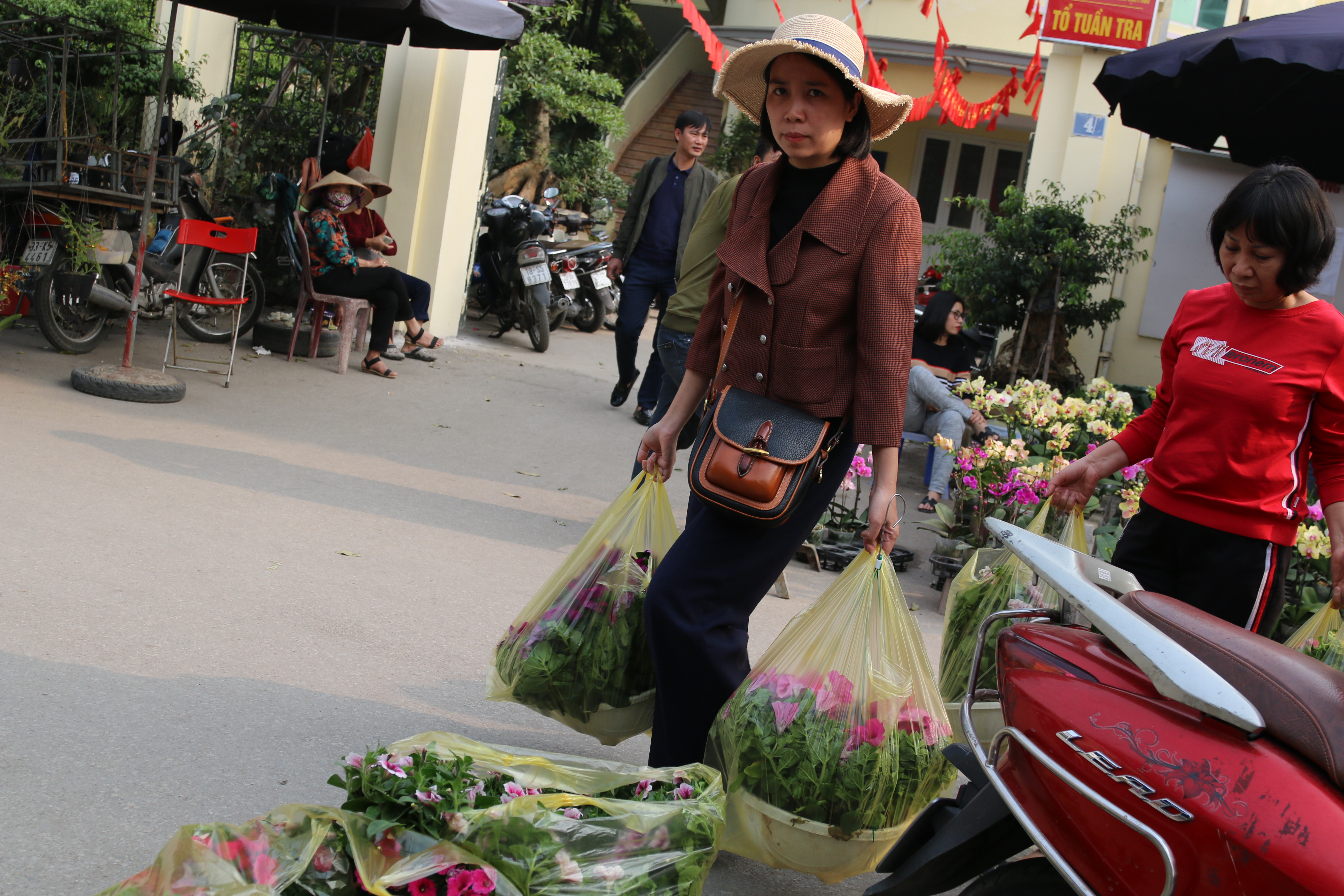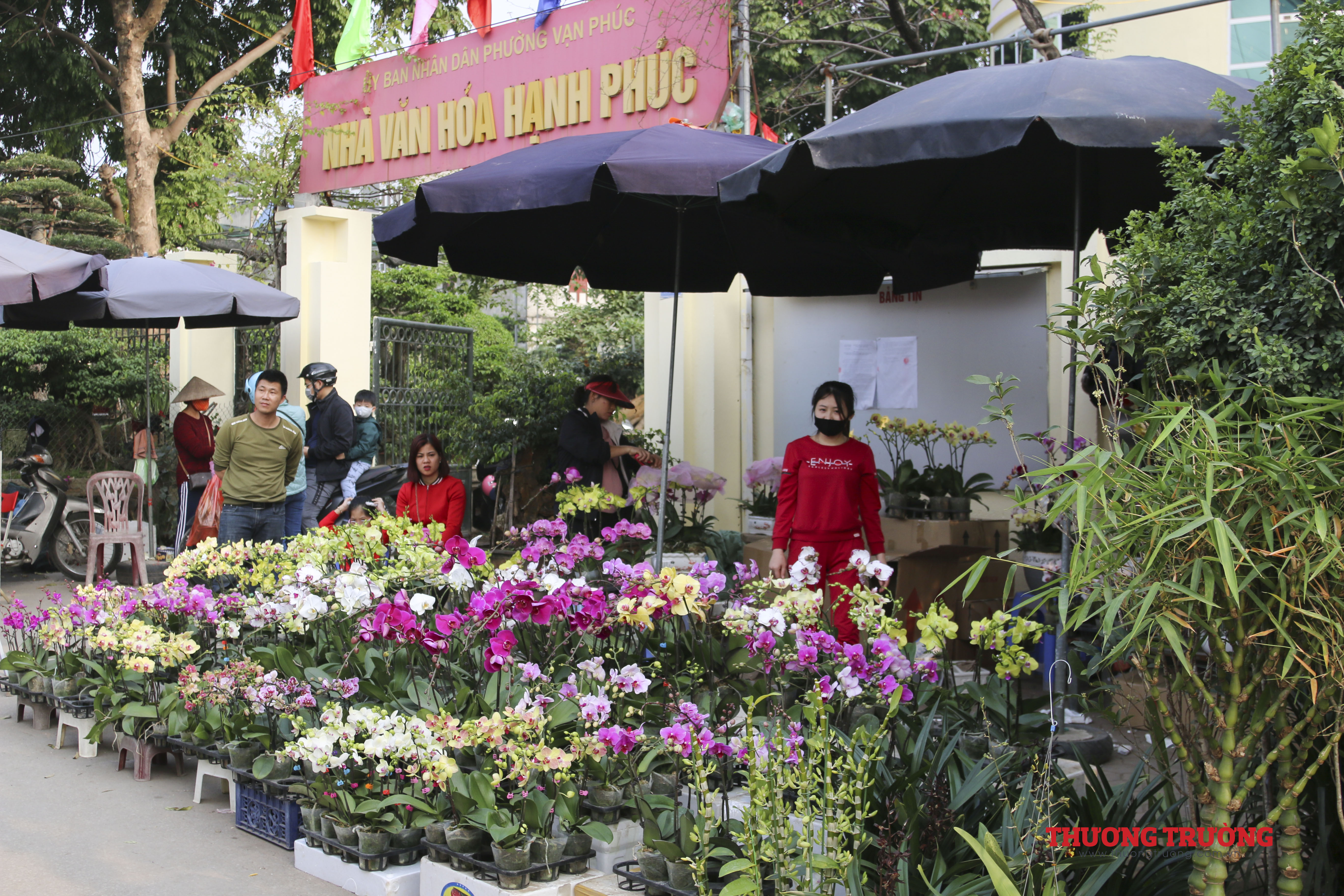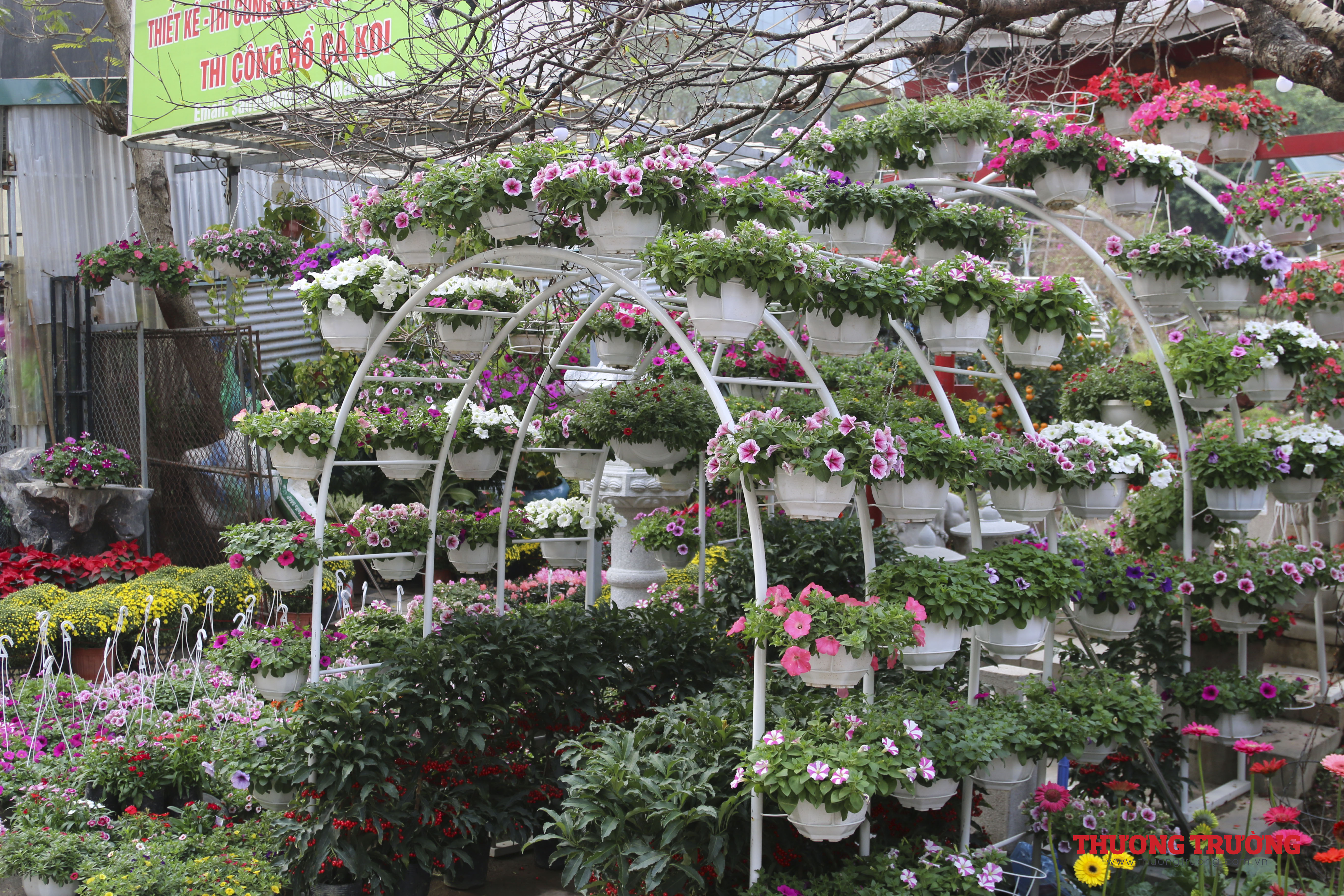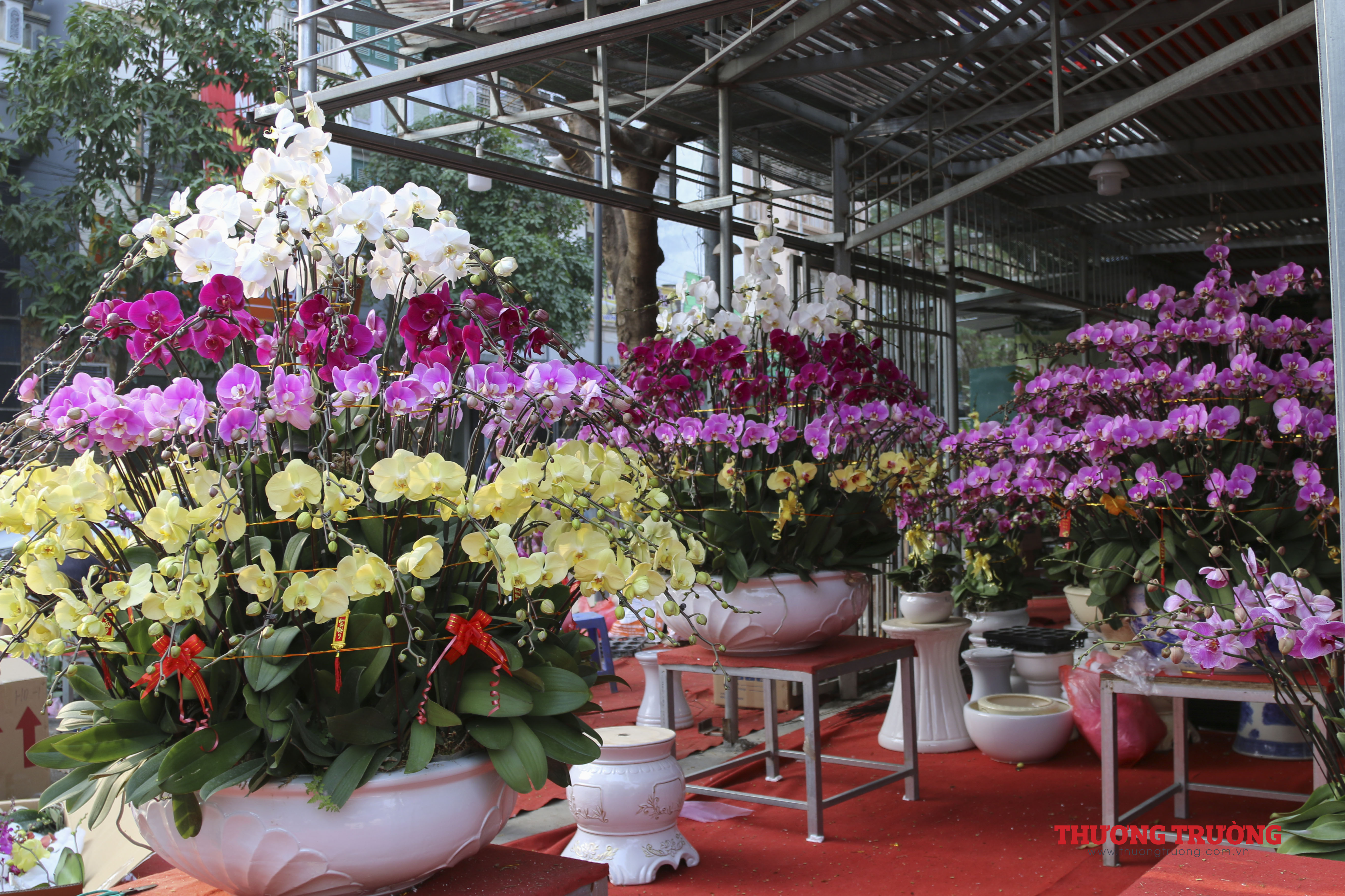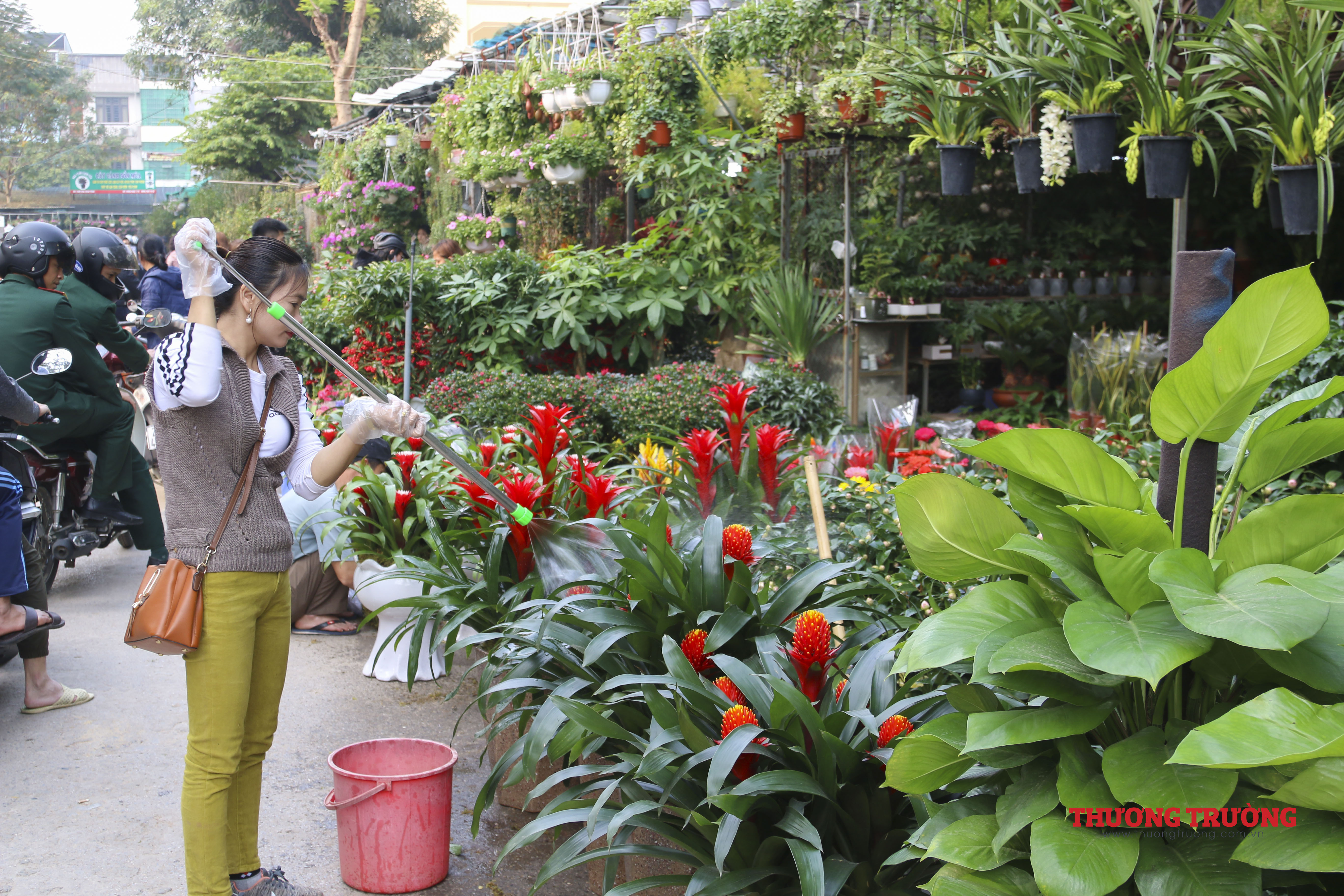 Còn khoảng 2 tuần nữa đến Tết, ngoài các nhà vườn có điểm bán cố định thì có tới hàng trăm người bán hàng kéo về từ những khu vực chuyên trồng hoa, cây cảnh lân cận như Chương Mỹ, Thường Tín, Văn Giang (Hưng Yên).