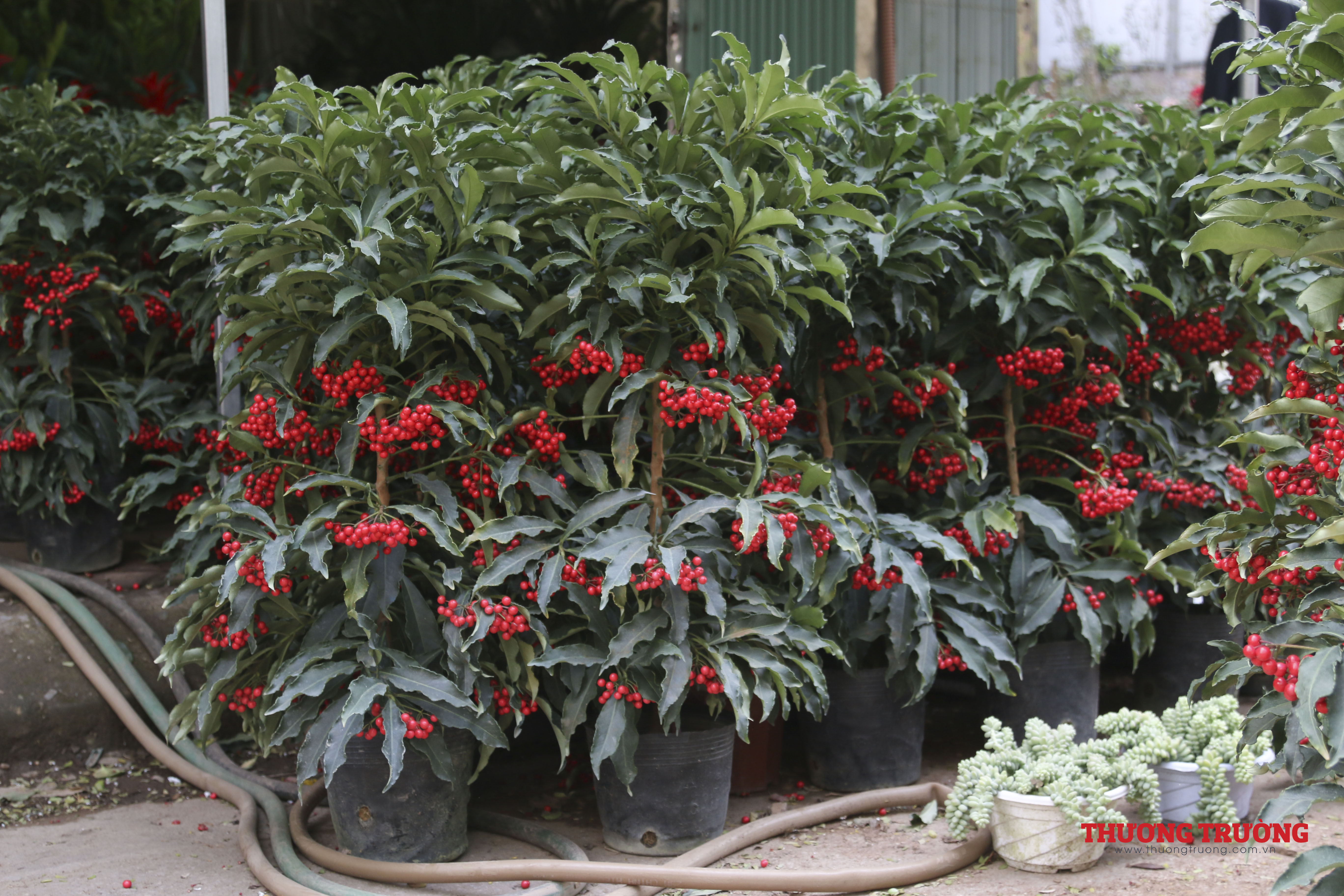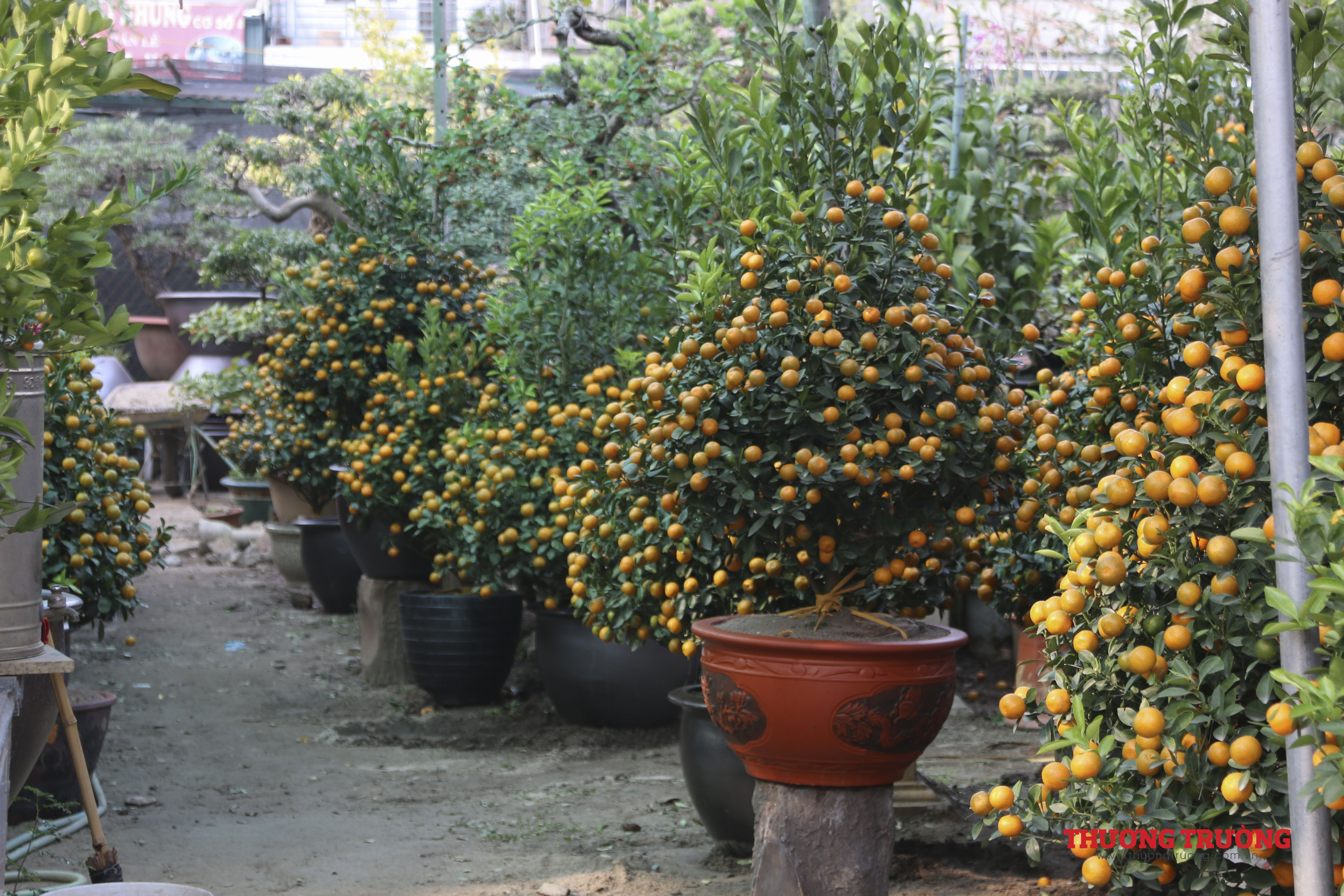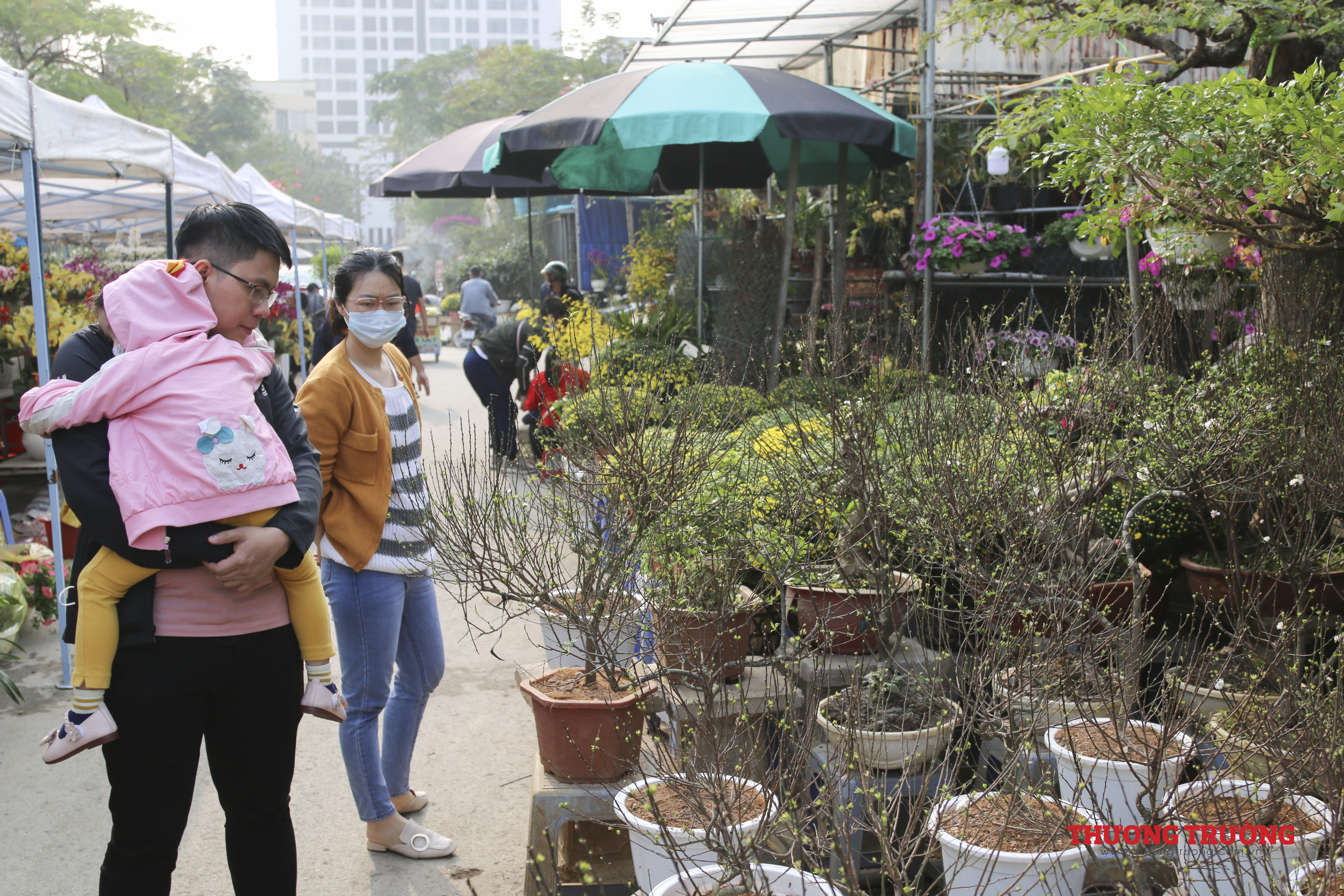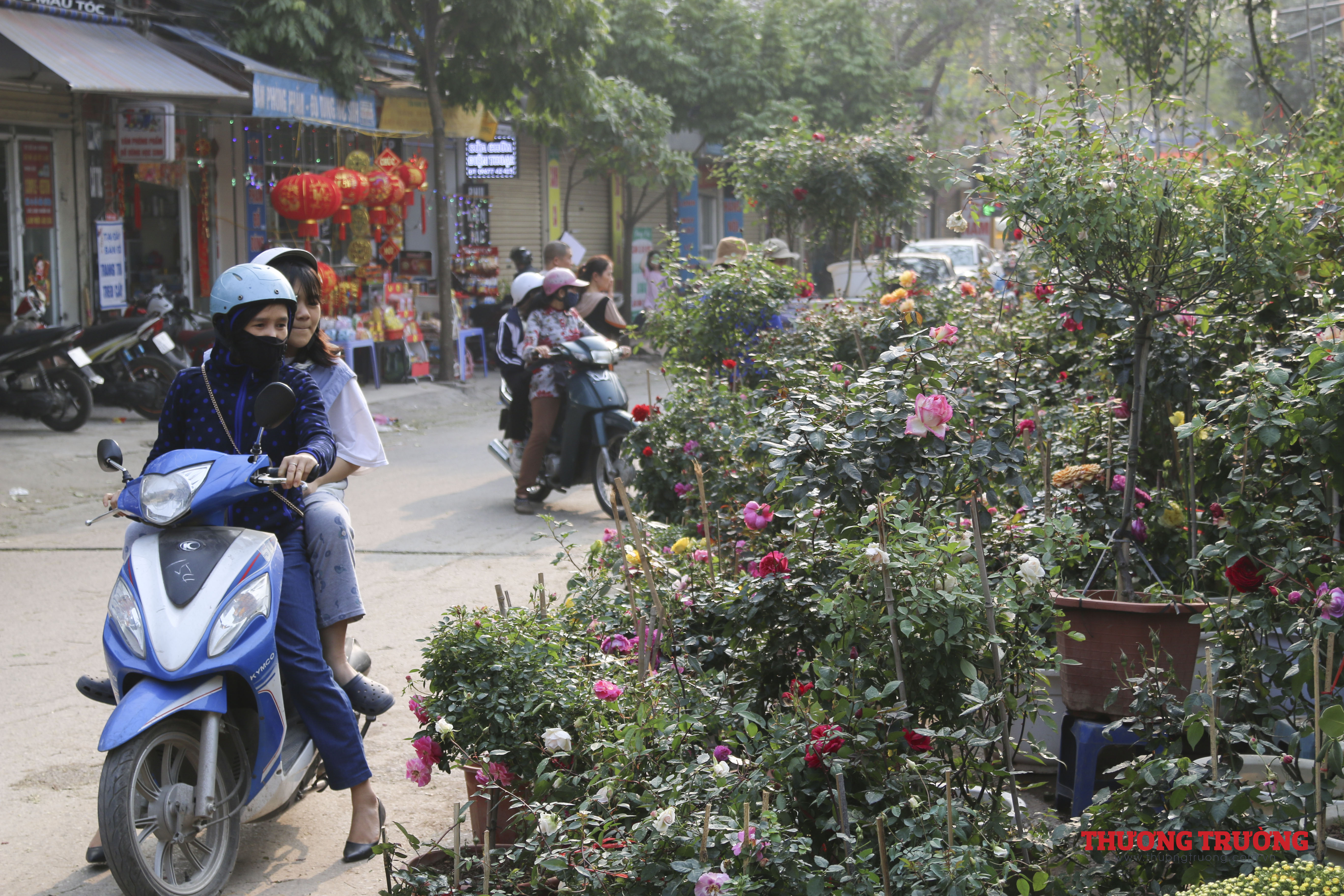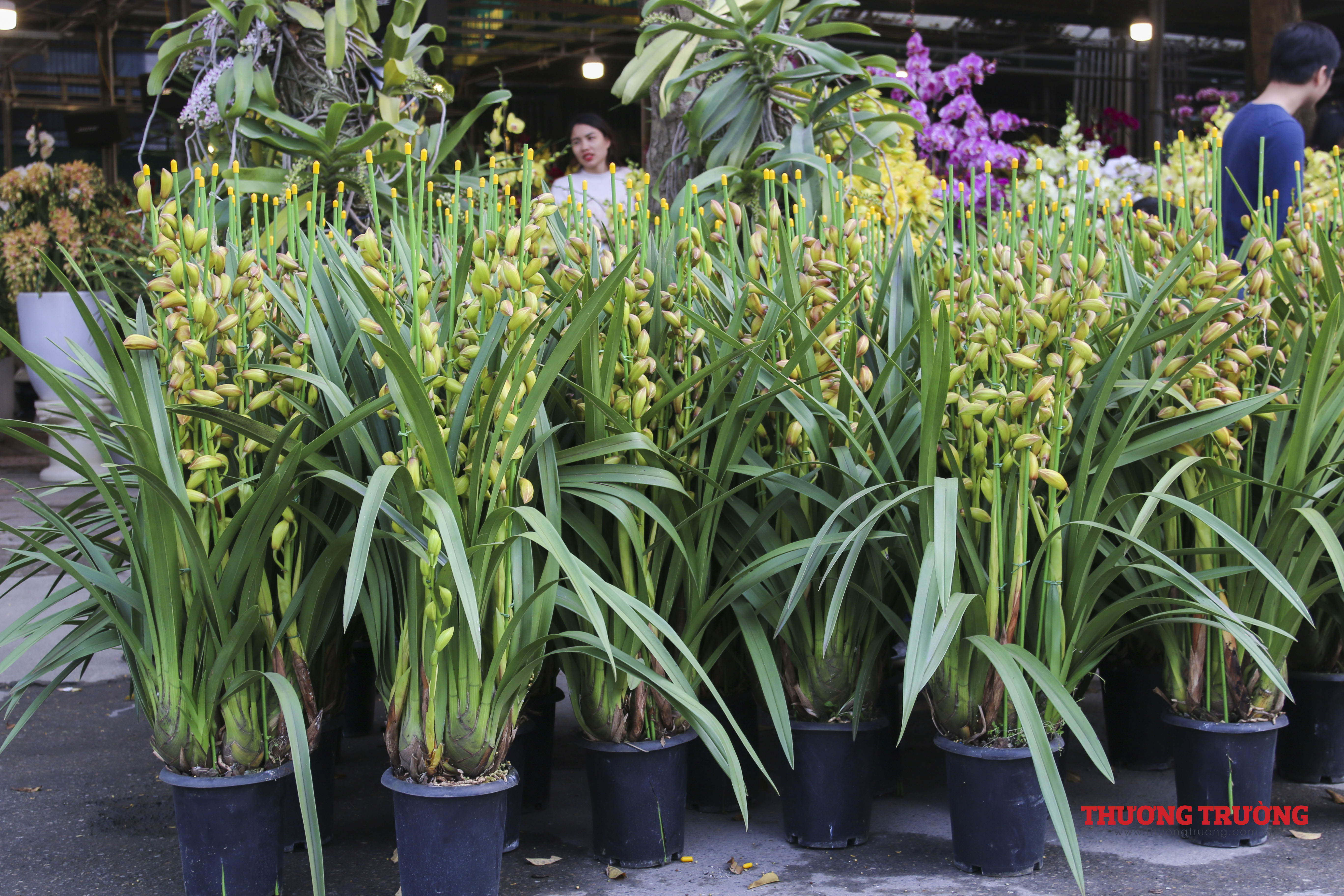 Còn khoảng 2 tuần nữa đến Tết, ngoài các nhà vườn có điểm bán cố định thì có tới hàng trăm người bán hàng kéo về từ những khu vực chuyên trồng hoa, cây cảnh lân cận như Chương Mỹ, Thường Tín, Văn Giang (Hưng Yên).