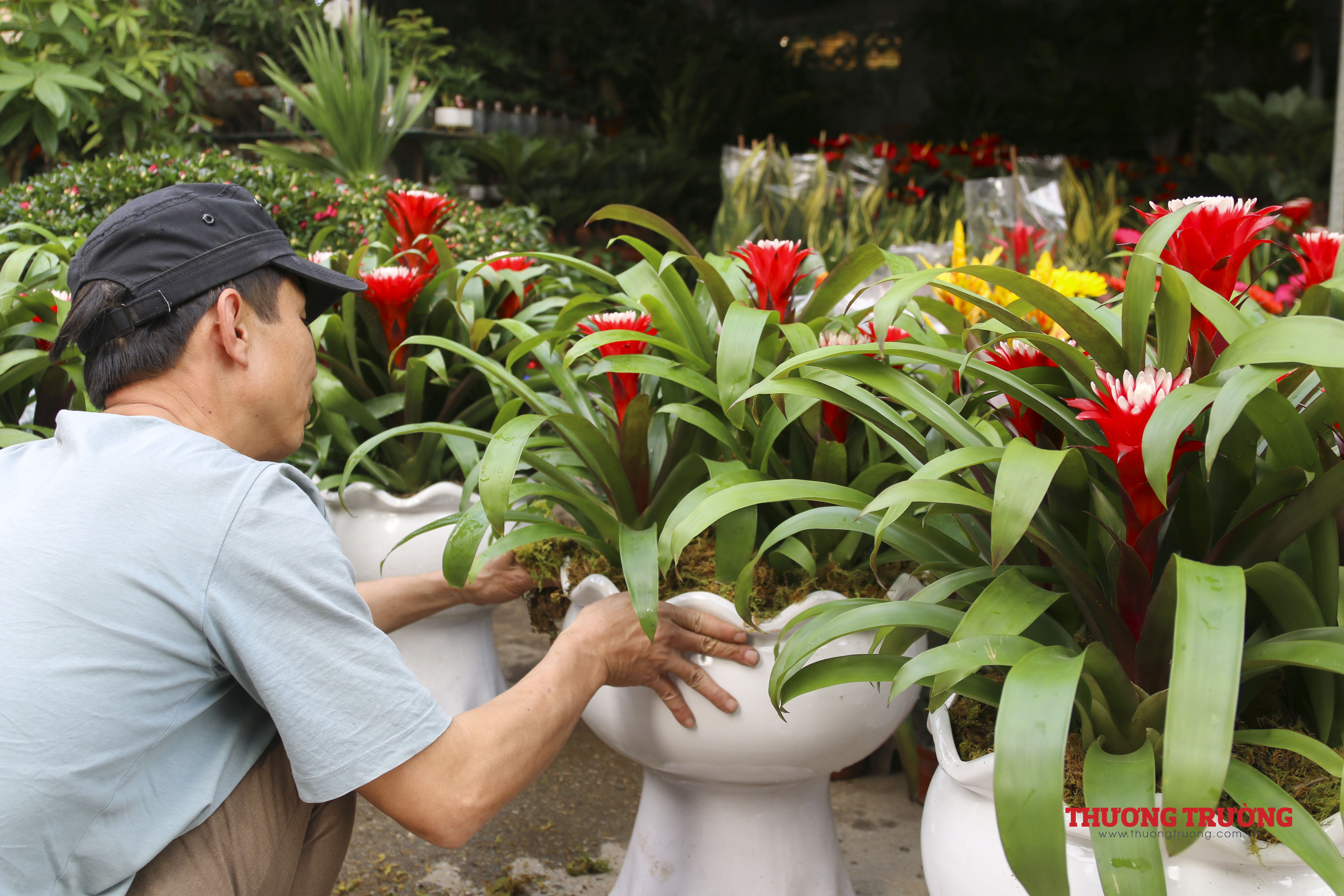 Dịp cận Tết các nhà vườn nhập về nhiều loại hoa đặc sắc, phong phú, tất bật để chăm sóc cây luôn tươi tốt.