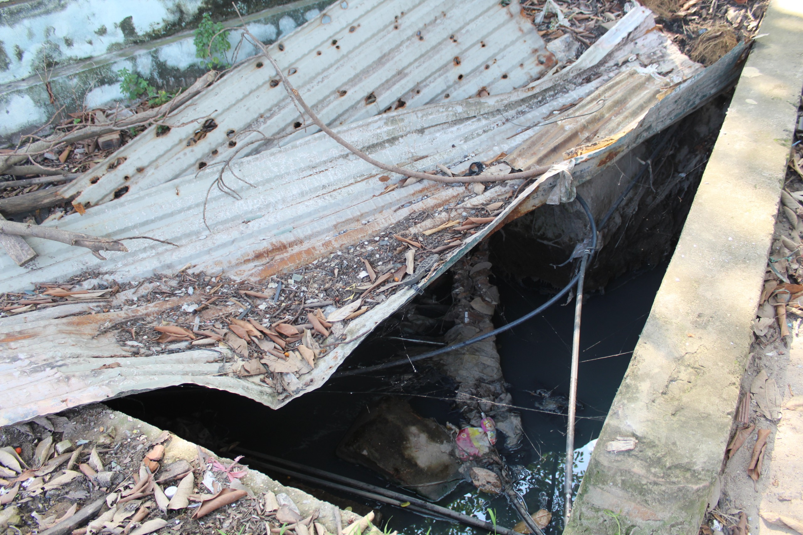 Một hố ga tại đường Tân Triều (Thanh Trì) có diện tích rất lớn cùng với mực nước rất sâu nhưng chỉ được che đậy một cách sơ sài. Chưa kể bên trong và xung quanh miệng hố còn có rất nhiều rác thải sinh hoạt