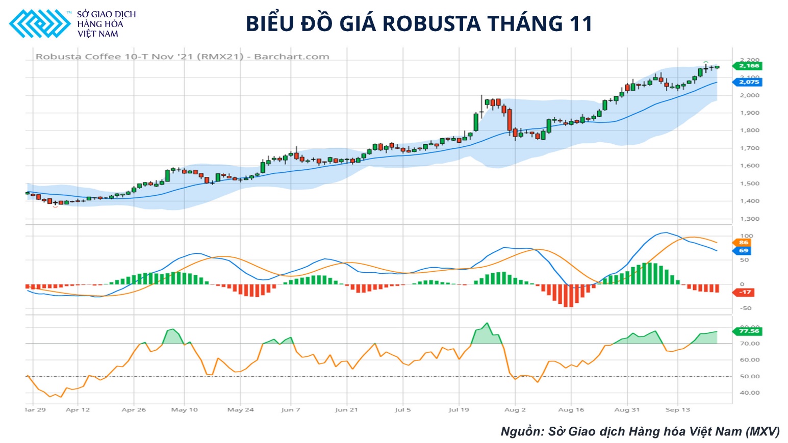 Biểu đồ giá Robusta tháng 11 (Nguồn: Sở giao dịch Hàng hóa Việt Nam)