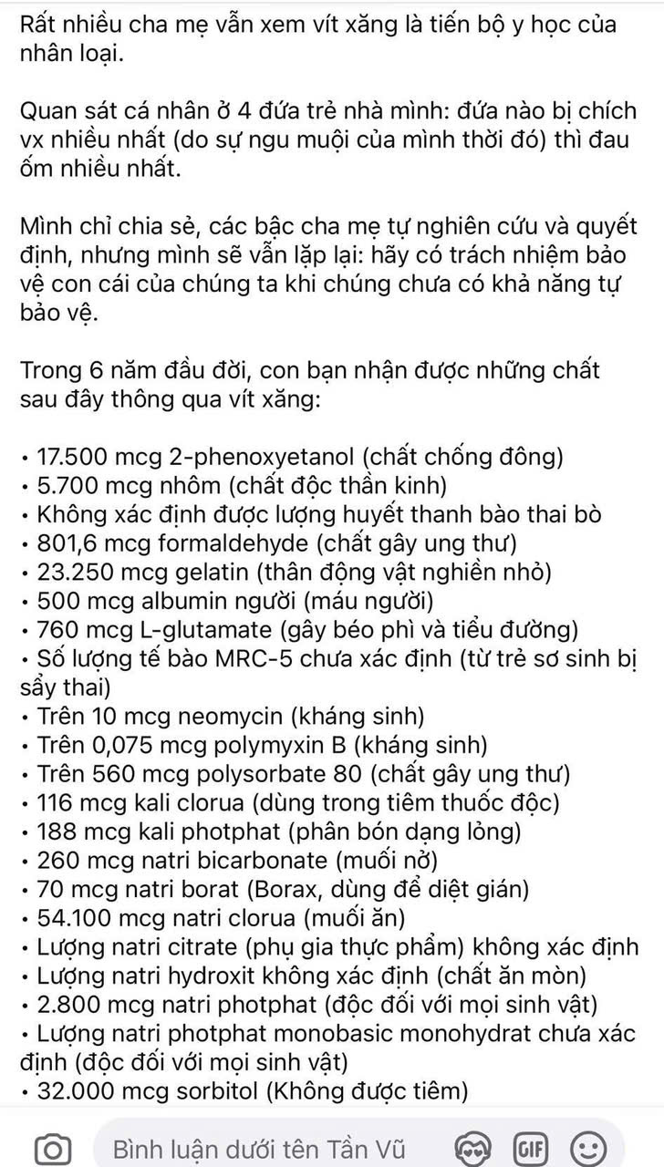 Thực tế, trong các nhóm "tự chữa lành," không ít người bày tỏ quan điểm chống vắc xin một cách phiến diện, thiếu cơ sở khoa học, nhưng lại được nhiều bà mẹ trẻ ủng hộ. Những bài viết này được chia sẻ và bình luận sôi nổi, thể hiện một phần cộng đồng có tư tưởng lệch lạc.