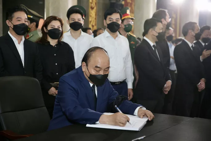 Chủ tịch nước Nguyễn Xuân Phúc ghi sổ tang. Ảnh: NLD.