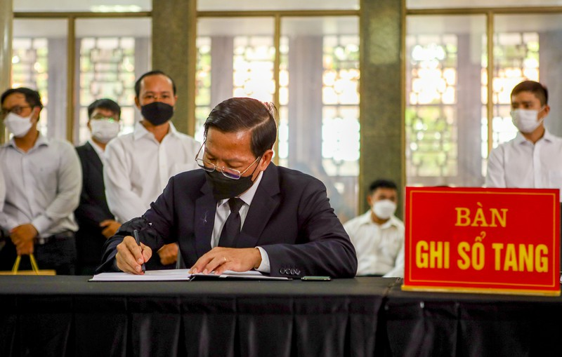 Chủ tịch UBND TP.HCM Phan Văn Mãi ghi sổ tang. Ảnh: Plo.