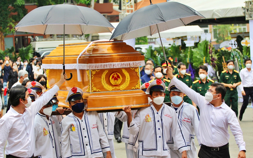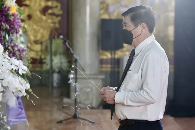 Đoàn viếng của Ban Tổ chức lễ tang do Chủ tịch UBND TP.HCM Phan Văn Mãi làm trưởng đoàn lặng lẽ tưởng nhớ về người đồng đội đã gắn bó 26 năm với Thành phố mang tên Bác, có nhiều đóng góp quan trọng trong sự phát triển chung của TP.HCM.
