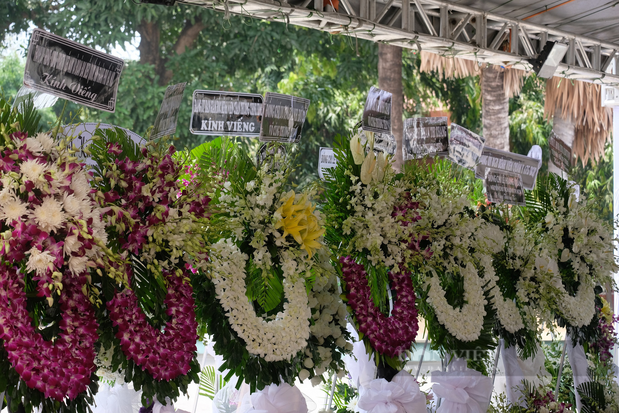 Từ sáng tới thời điểm diễn ra lễ viếng, hàng trăm vòng hoa viếng được các cá nhân, tổ chức gửi đến để chia buồn sâu sắc cùng gia đình ông Lê Hòa Bình.