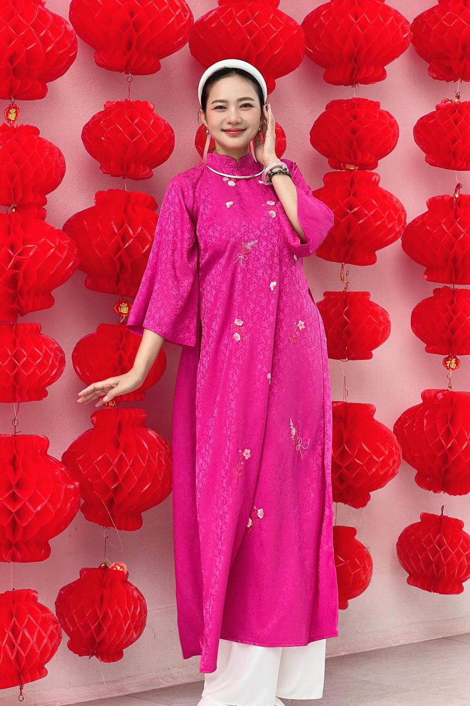 Phan Như Thảo khoe sắc vóc chẳng khác gì thời son rỗi khi diện áo dài hồng ở tiệc tất niên.