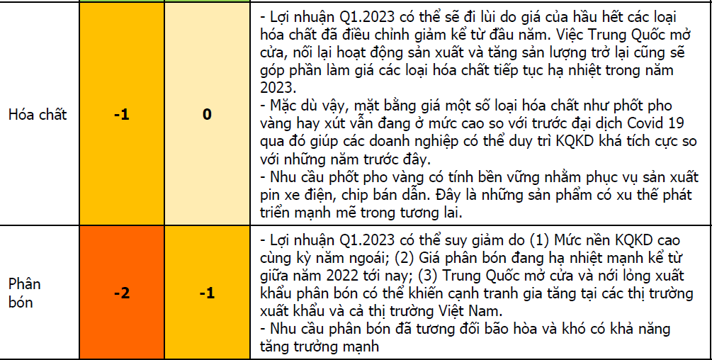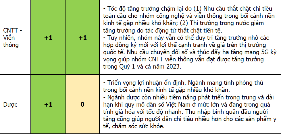 Dù vẫn phải đối mặt với nhiều thách thức, Agriseco Research cho rằng một số thông tin tích cực đang dần xuất hiện có thể hỗ trợ một số nhóm ngành duy trì kết quả kinh doanh tích cực trong quý 1/2023.