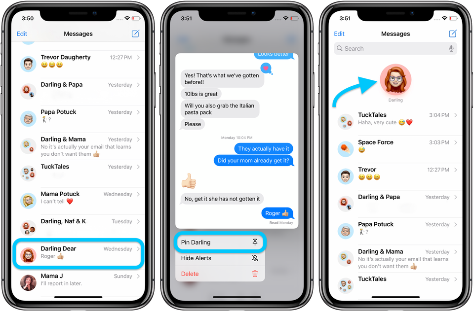 Đánh dấu tin nhắn. iOS 14 cũng bổ sung khả năng ghim tin nhắn Messages, giúp người dùng truy cập nhanh đến những cuộc hội thoại quan trọng. Để thực hiện việc này, bạn chỉ cần ấn giữ vào tin nhắn, sau đó chọn Ghim. Cuộc hội thoại sẽ luôn xuất hiện ở hàng đầu trong ứng dụng Messages. Ảnh: 9to5mac.