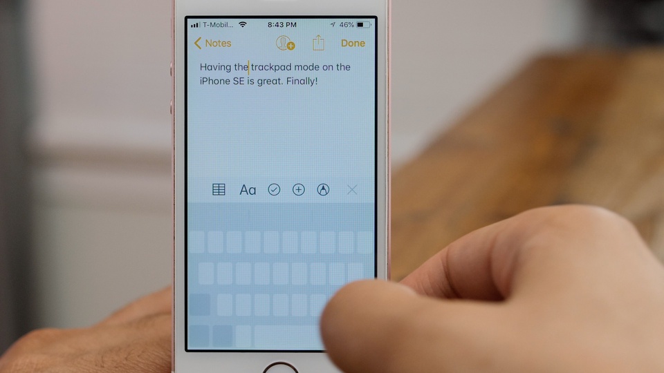 Di chuyển con trỏ bằng bàn phím. Người dùng có thể dễ dàng chỉnh sửa văn bản trên iPhone với tính năng di chuyển trỏ chuột. Để thao tác, bạn chỉ cần ấn giữ phím cách (Space bar) đến khi chữ trên bàn phím mờ đi, sau đó tiếp tục giữ và di chuyển con trỏ đến vị trí mong muốn. Ảnh: 9to5mac.