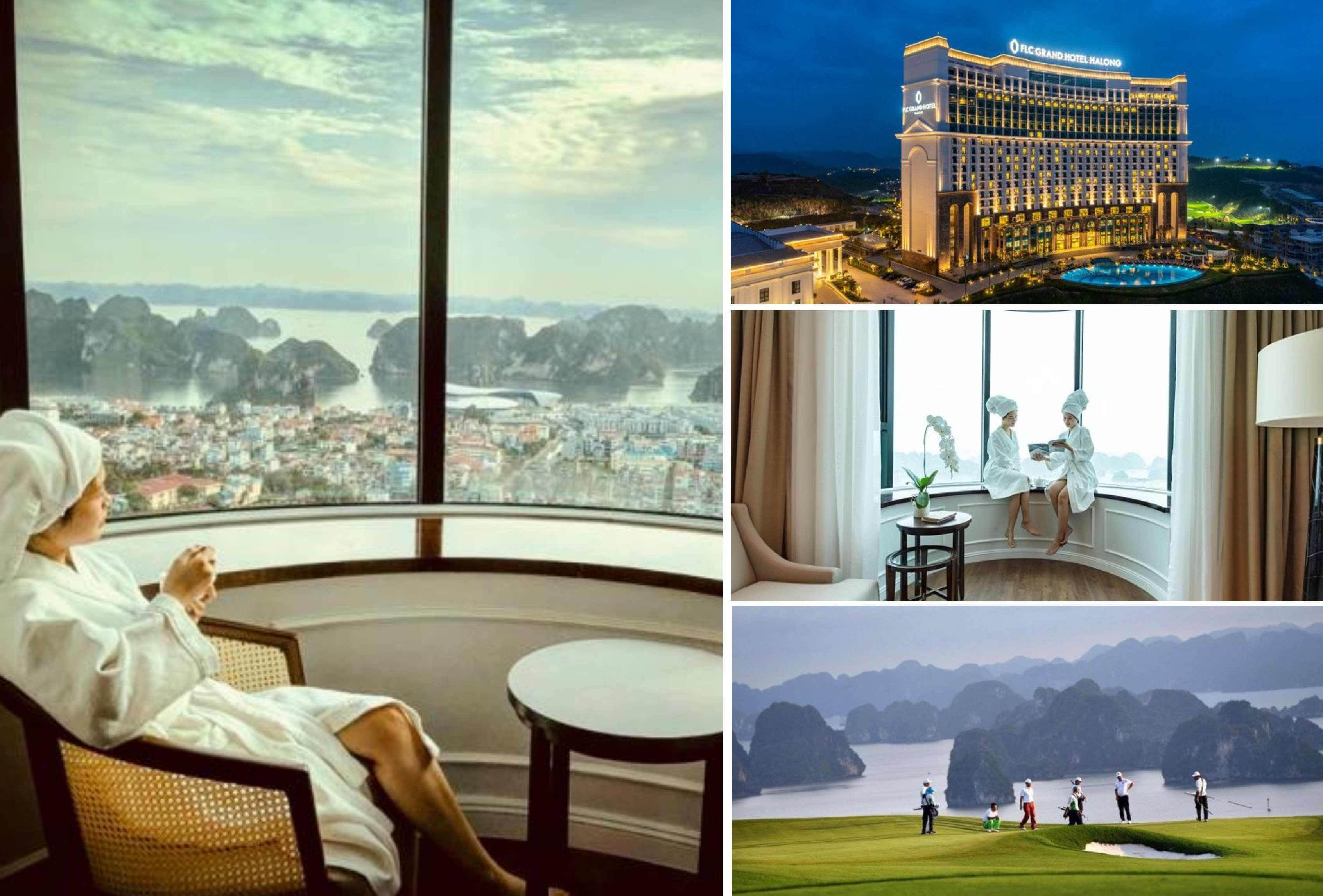 Những du khách “lười biếng”, thay vì thức dậy sớm, có thể ngắm toàn cảnh vịnh di sản từ độ cao 100m mà vẫn cuộn tròn trong chăn ấm nếu lựa chọn lưu trú tại quần thể nghỉ dưỡng FLC Hạ Long. Đây cũng là nơi nhiều du khách golf lựa chọn để thực hiện cú swing lấy may dịp đầu năm từ sân golf có tầm nhìn hướng vịnh tuyệt đẹp.