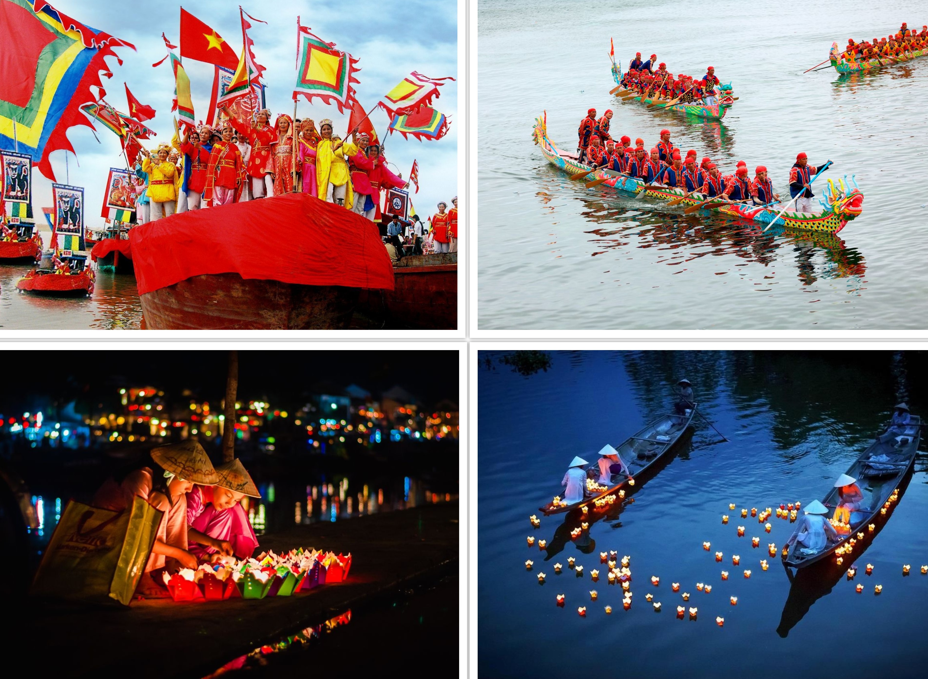 Cách Huế chỉ gần 3 tiếng di chuyển bằng xe buýt, Hội An mùa xuân mang đến cho khách du lịch cảm giác thoải mái, dễ chịu bởi tiết trời khô ráo và mát mẻ. Một hoạt động không nên bỏ lỡ trong tiết trời xuân Hội An đó là lễ hội thả đèn hoa vào đêm rằm. Còn gì tuyệt hơn khi giữa đêm trăng sáng, được cùng người thương ngồi trên chiếc thuyền lênh đênh giữa sông Hoài, ngắm phố cổ lung linh trong ánh nến.
