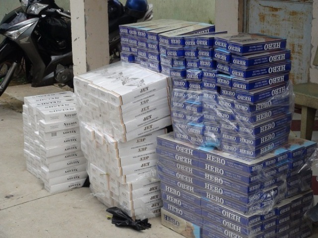 Qua kiểm tra trên xe ô tô, lực lượng chức năng phát hiện 1.030 bao thuốc lá nhãn hiệu Hero, Jet không có hóa đơn chứng từ.