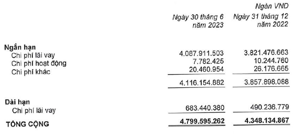 Tại thời điểm cuối quý 2, HAGL vẫn chưa tiến hành thanh toán lãi vay phải trả với tổng giá trị 4.799 tỷ đồng.
