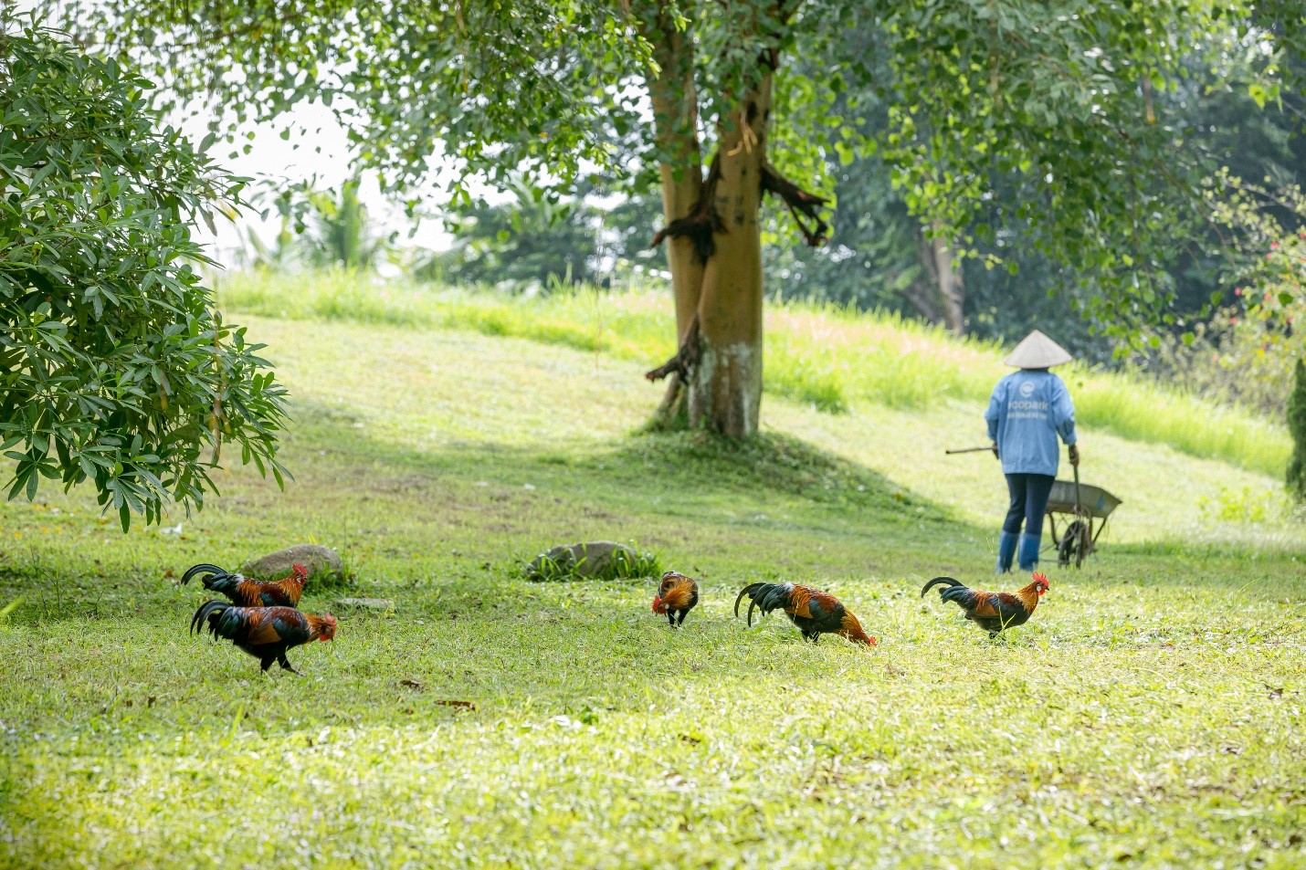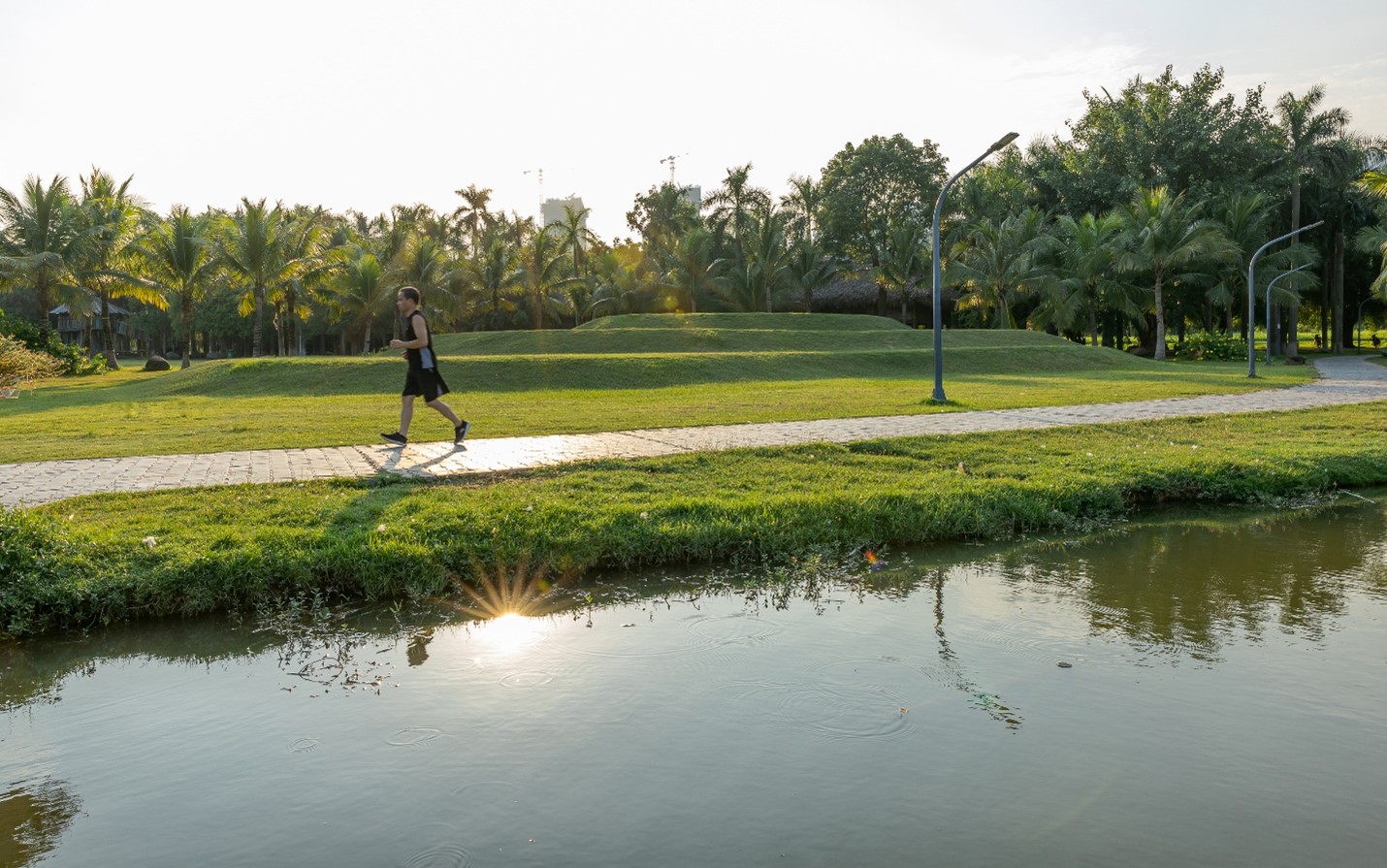 Nói đến một Ecopark đẹp, không thể không nhắc tới những người hàng ngày tô thắm thêm cho vẻ đẹp của mảnh đất này. Đó là những người công nhân trong đội Cây Xanh của khu đô thị, ngày ngày dùng những chiếc câu liêm cán dài, hoặc ngất nghểu ngồi trên ca- bin cần cẩu của chiếc xe chuyên dụng như những chú hươu cao cổ, để cắt tỉa, đẵn chặt, ngoặc bỏ những cành khô lá úa trên những thân cây đang vươn cành xanh lá. Họ miệt mài, cần mẫn làm công việc này với hàng triệu cây xanh ở khu đô thị, khiến cho cây cối ở đây luôn mươn mướt tươi xanh.